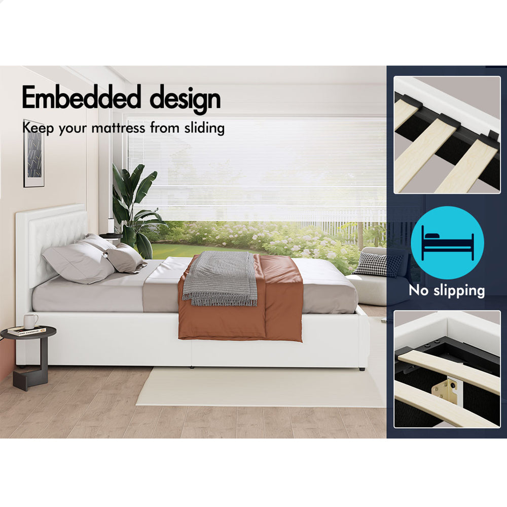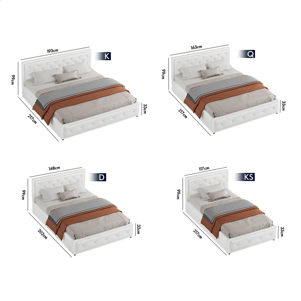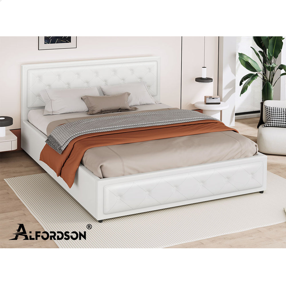 ALFORDSON Bed Frame Queen Size Gas Lift Storage Mattress Base Leather White