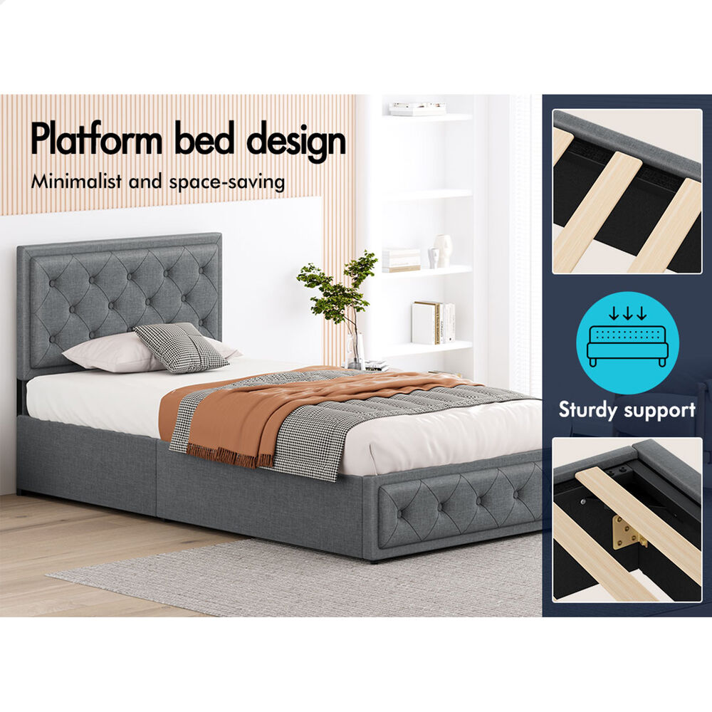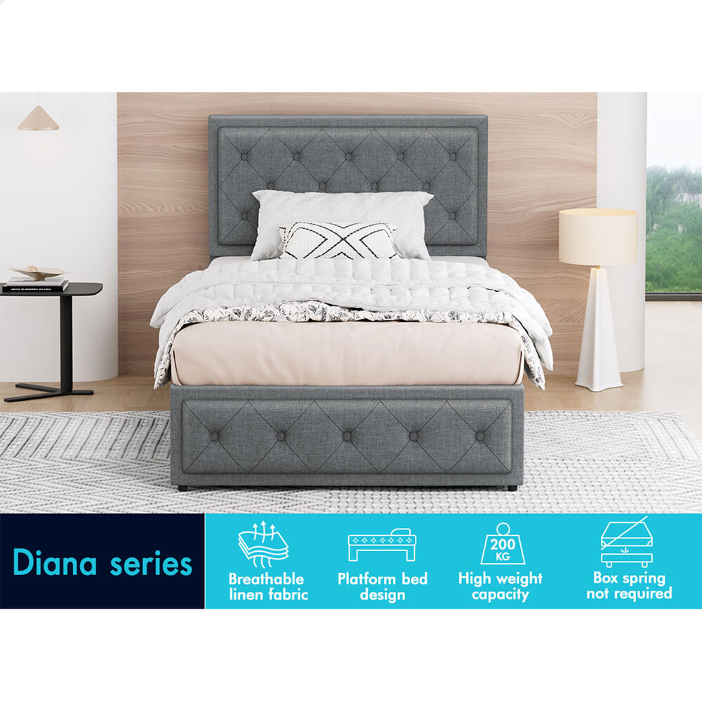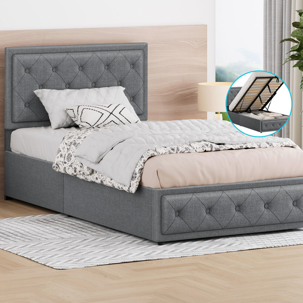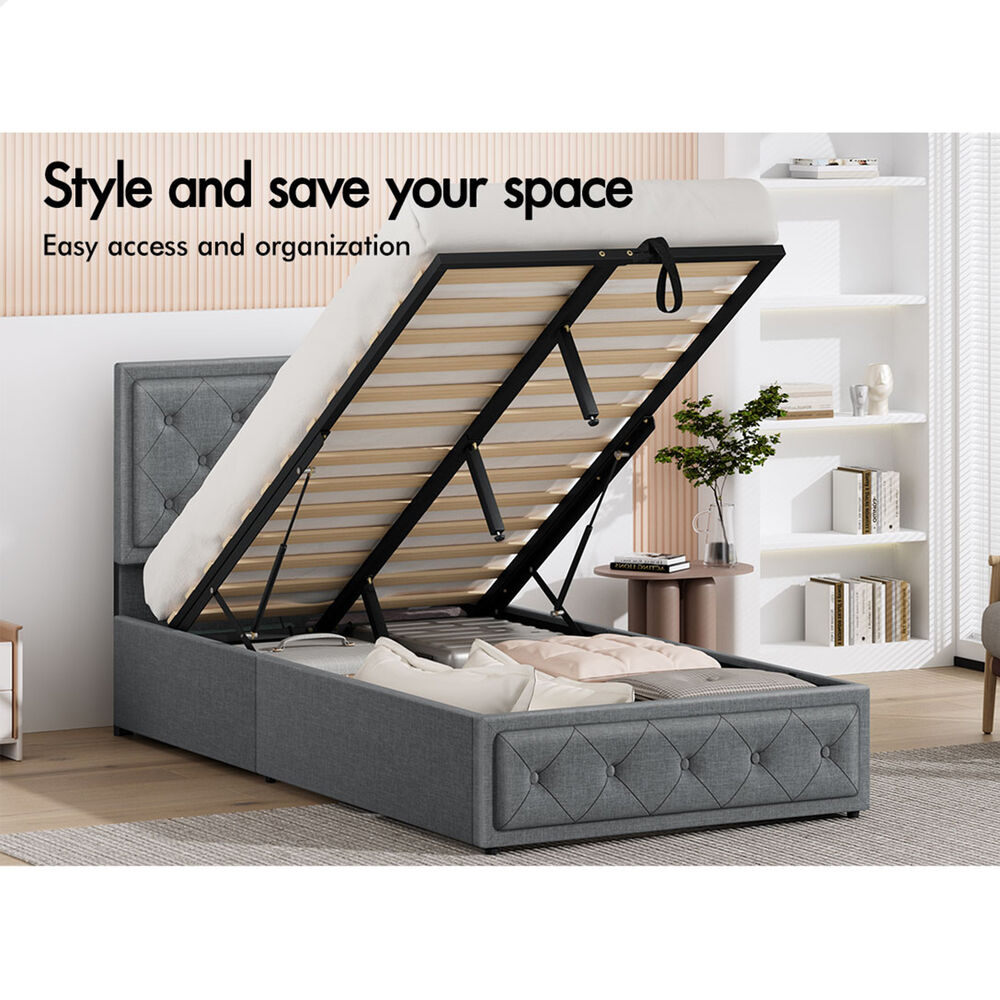 ALFORDSON Bed Frame King Single Gas Lift Storage Mattress Base Fabric Grey DIANA