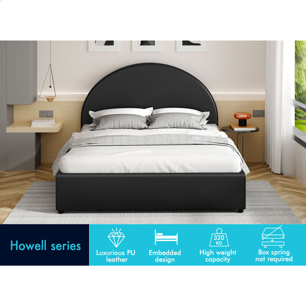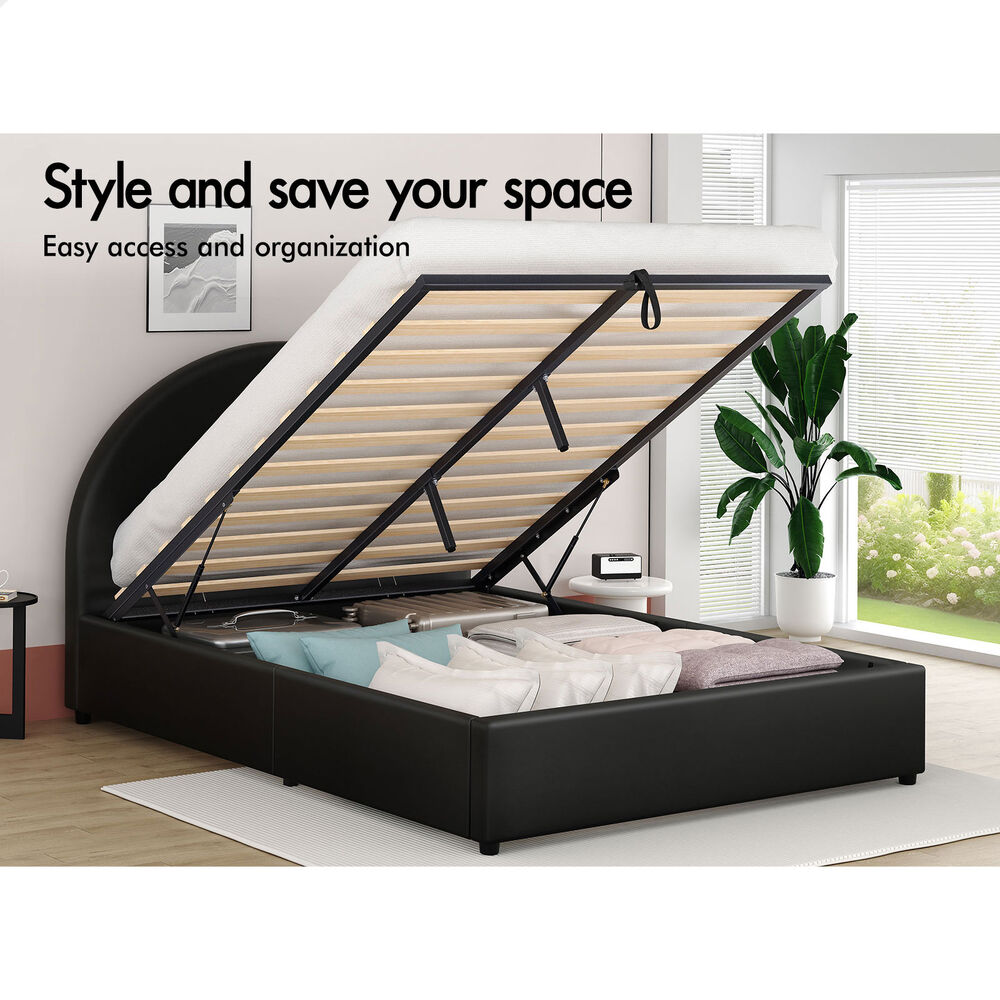 ALFORDSON Bed Frame Double Size Gas Lift Base With Storage Black Leather HOWELL