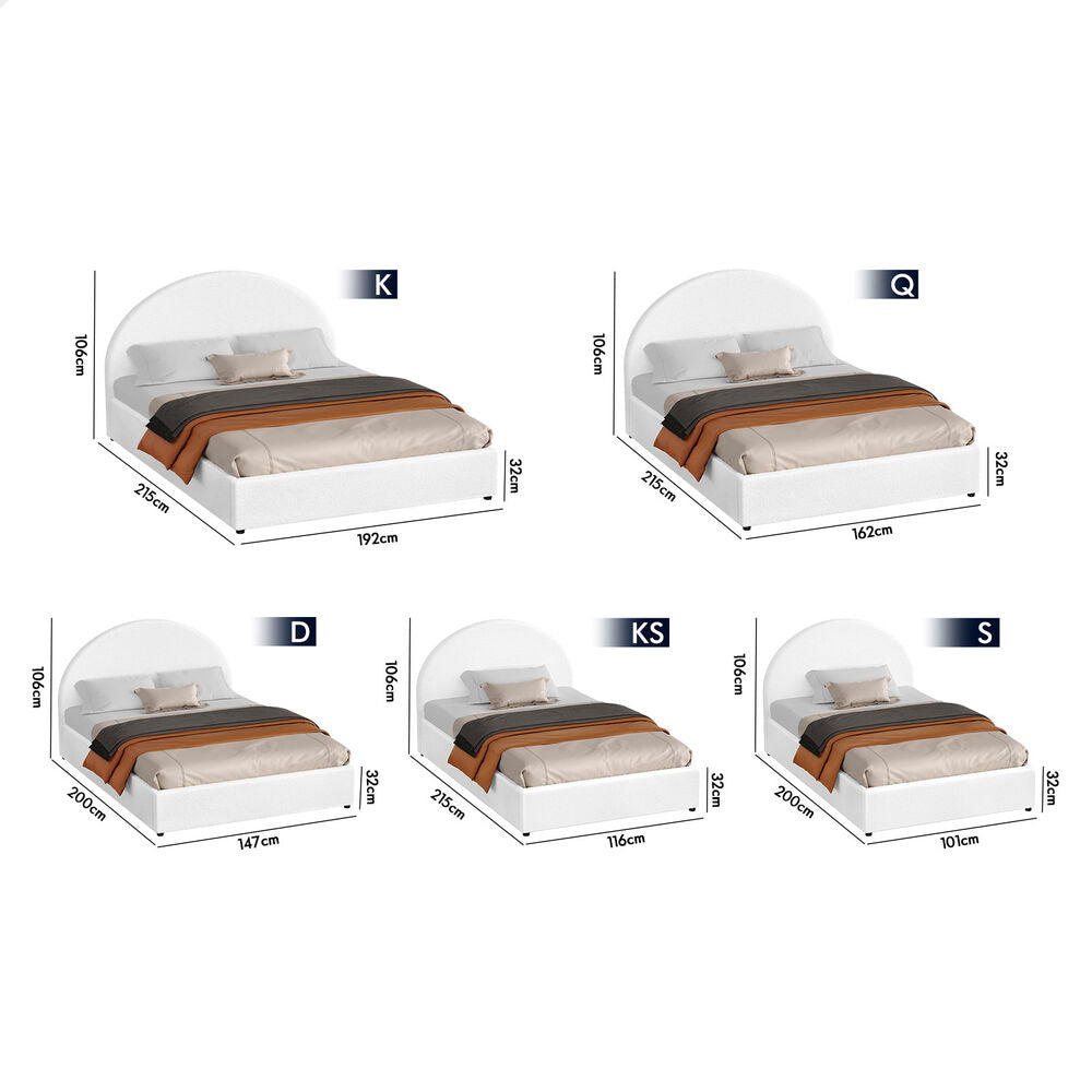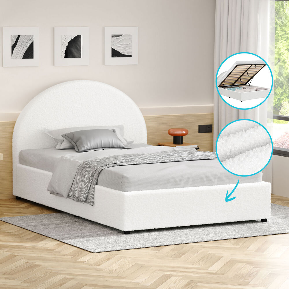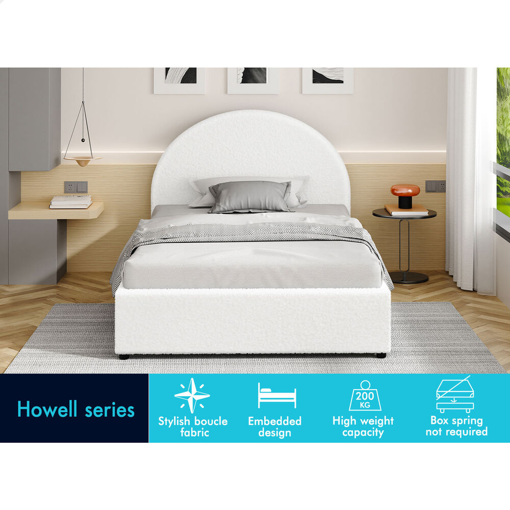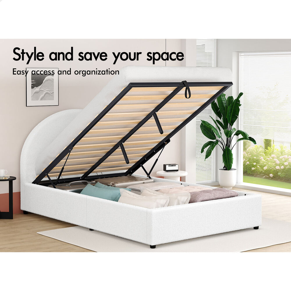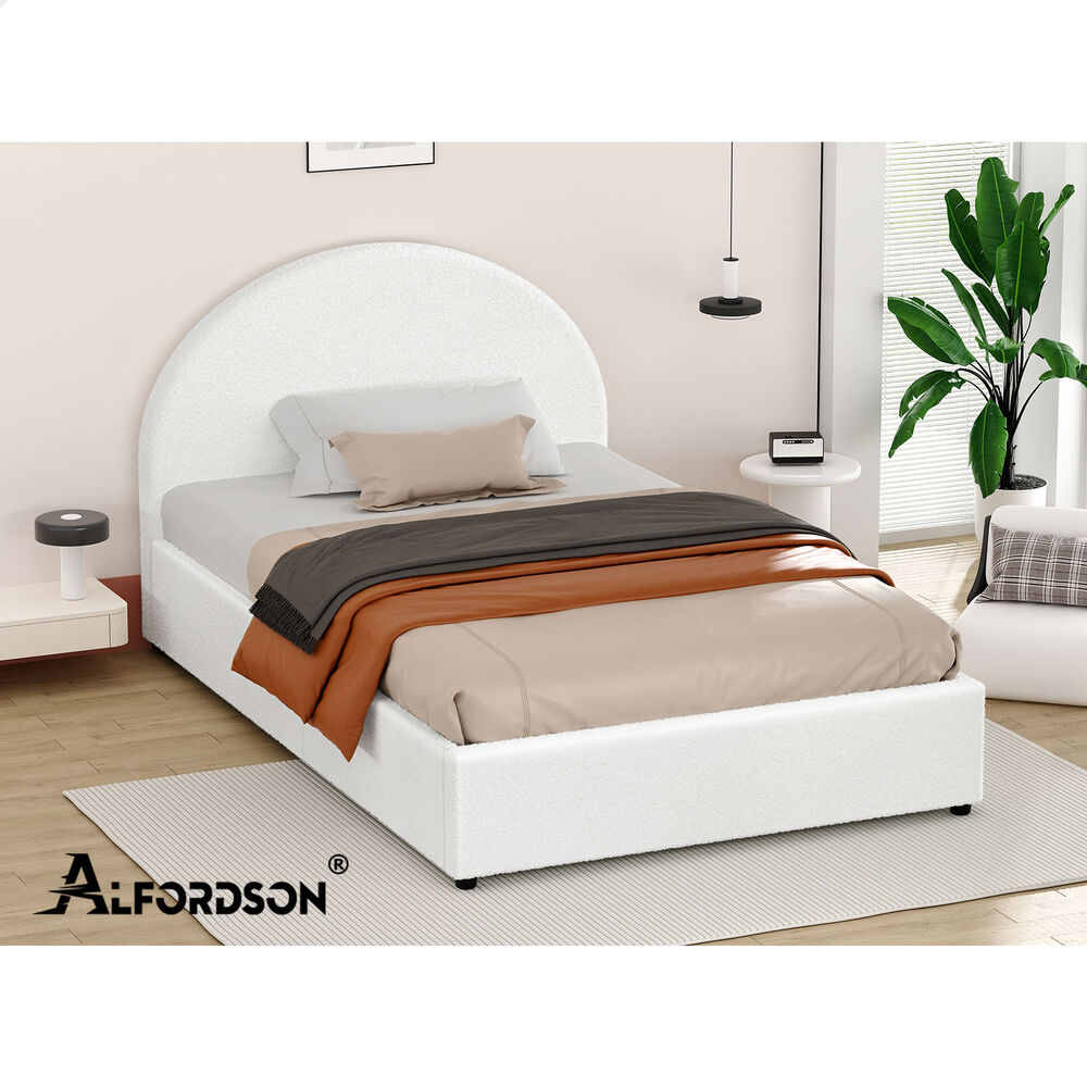 ALFORDSON Bed Frame King Single Gas Lift Base With Storage White Boucle HOWELL