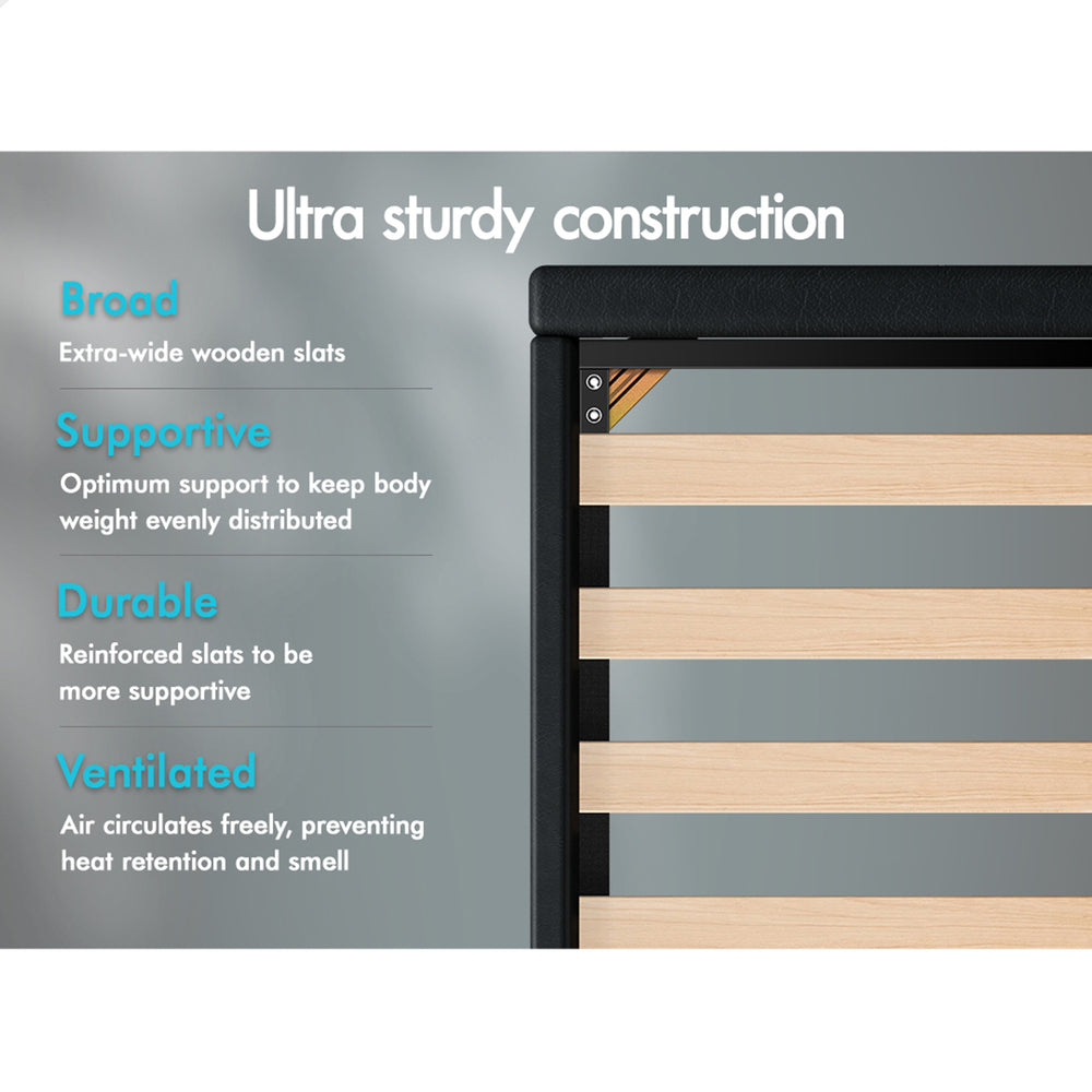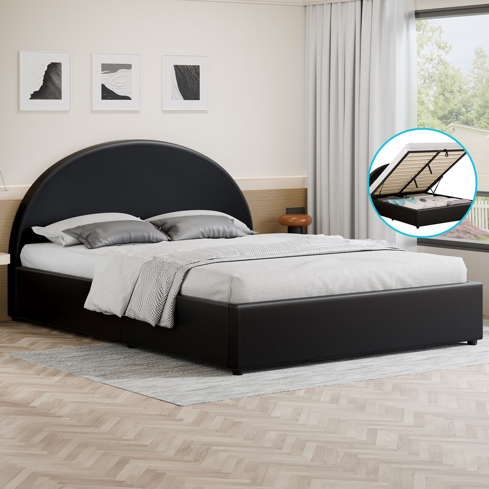 ALFORDSON Bed Frame Queen Size Gas Lift Base With Storage Black Leather HOWELL