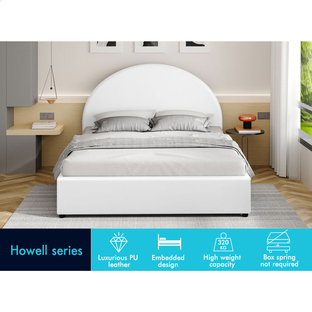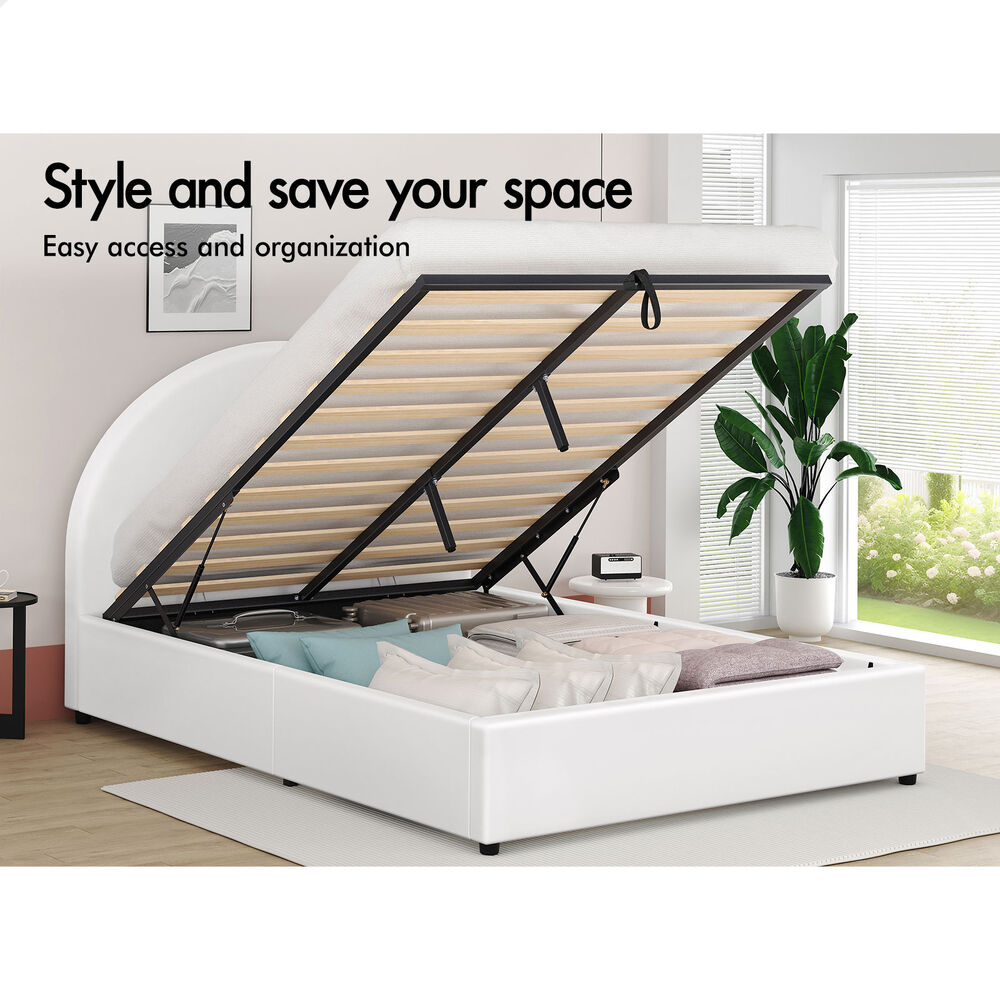 ALFORDSON Bed Frame Queen Size Gas Lift Base With Storage White Leather HOWELL