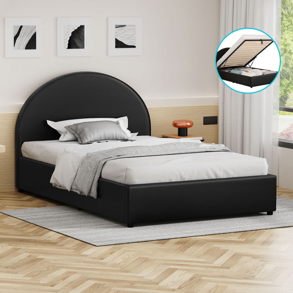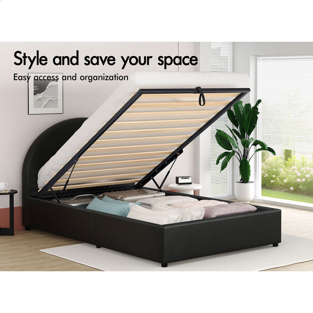 ALFORDSON Bed Frame Single Size Gas Lift Base With Storage Black Leather HOWELL