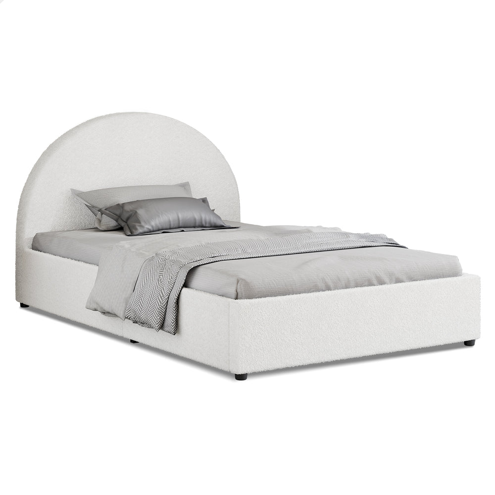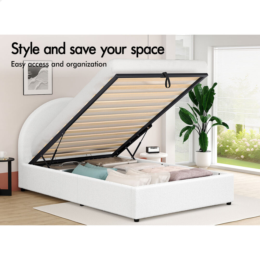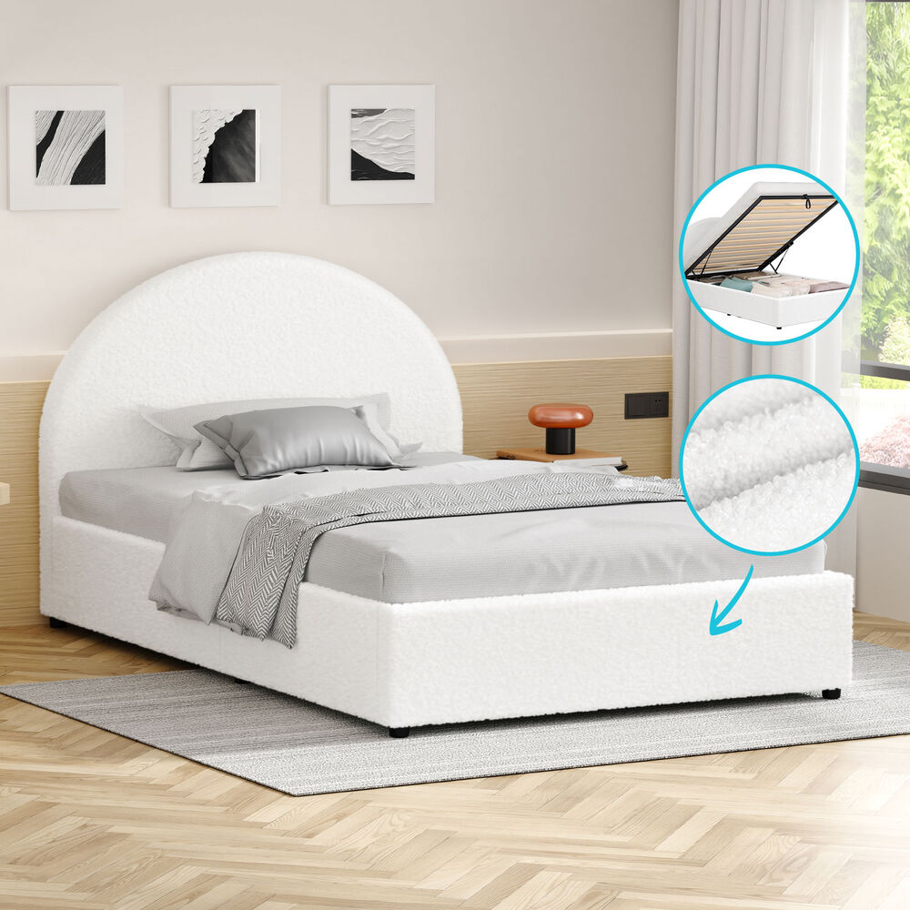 ALFORDSON Bed Frame Single Size Gas Lift Base With Storage White Boucle HOWELL