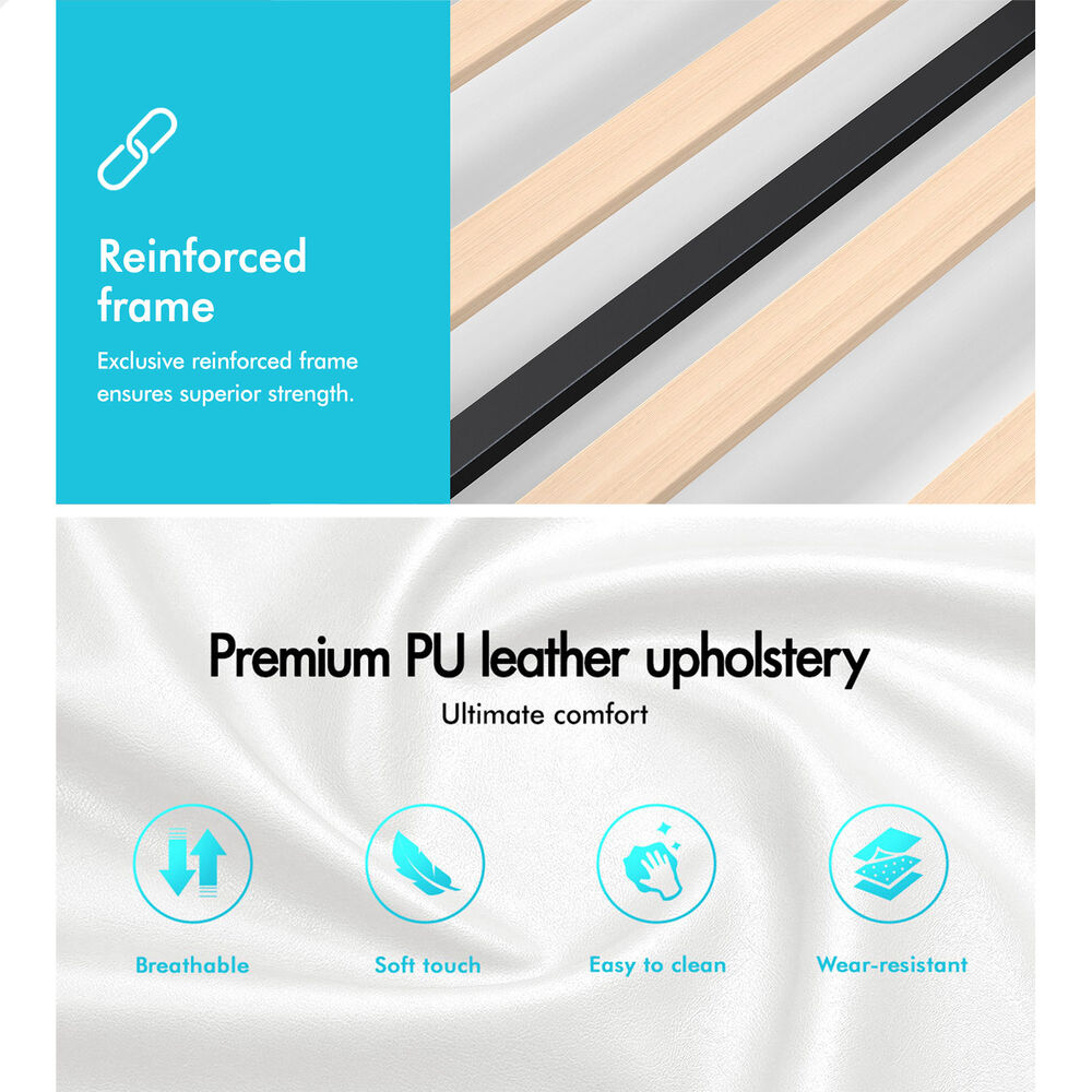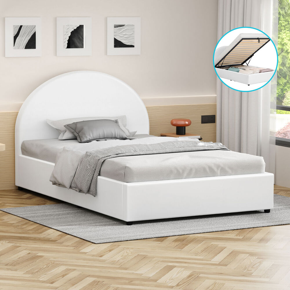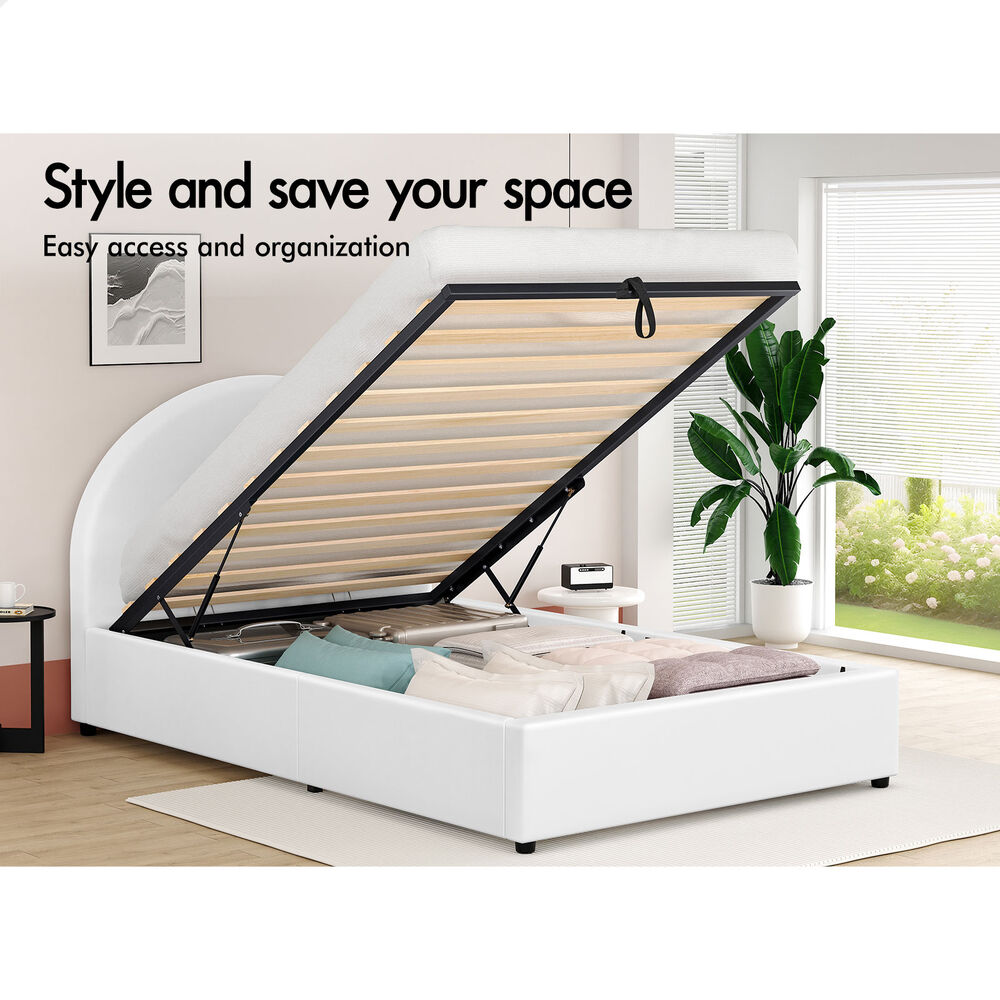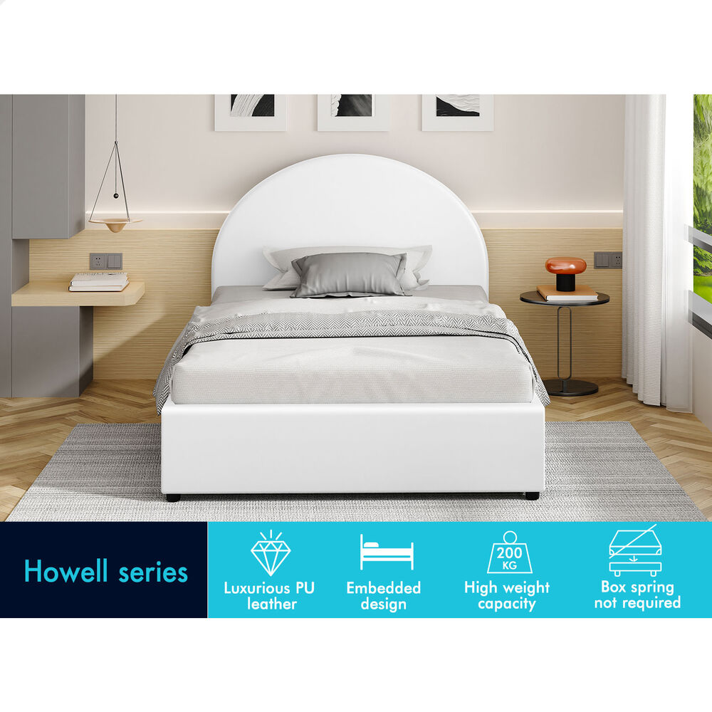 ALFORDSON Bed Frame Single Size Gas Lift Base With Storage White Leather HOWELL