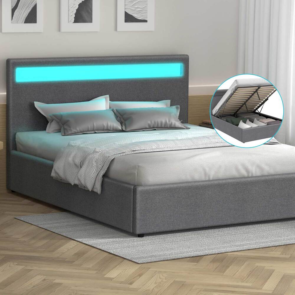 ALFORDSON Bed Frame Double Size RGB LED Gas Lift Base Platform Storage Grey