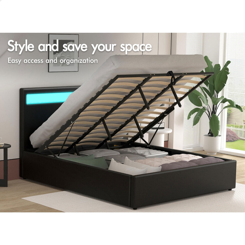 ALFORDSON Bed Frame King Size RGB LED Gas Lift Base Platform Storage Black
