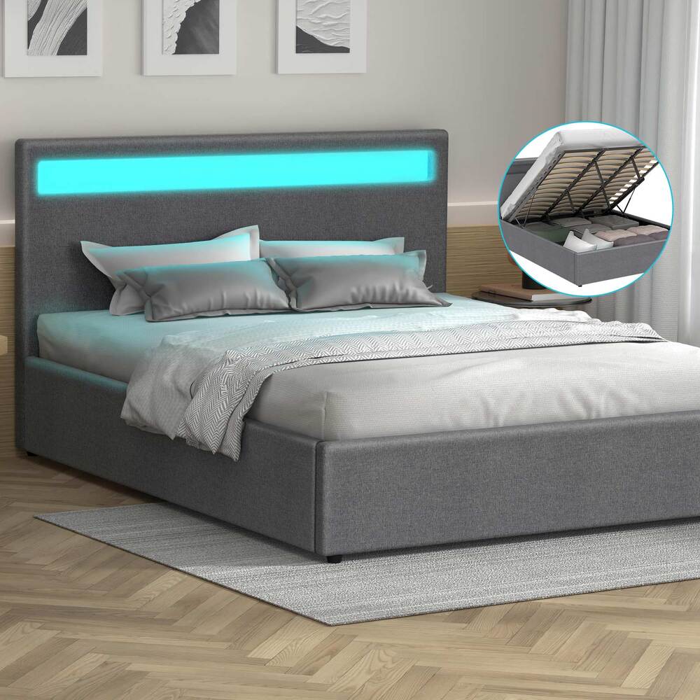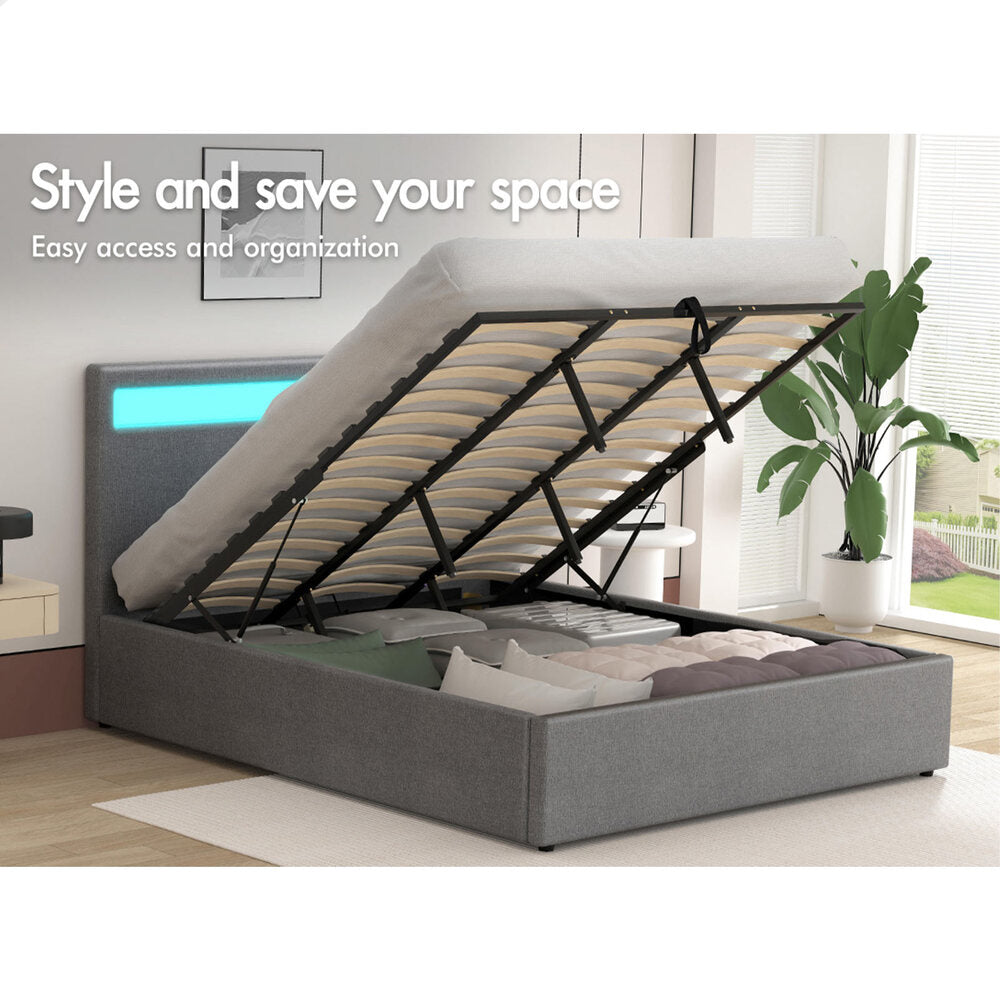 ALFORDSON Bed Frame King Size RGB LED Gas Lift Base Platform Storage Grey