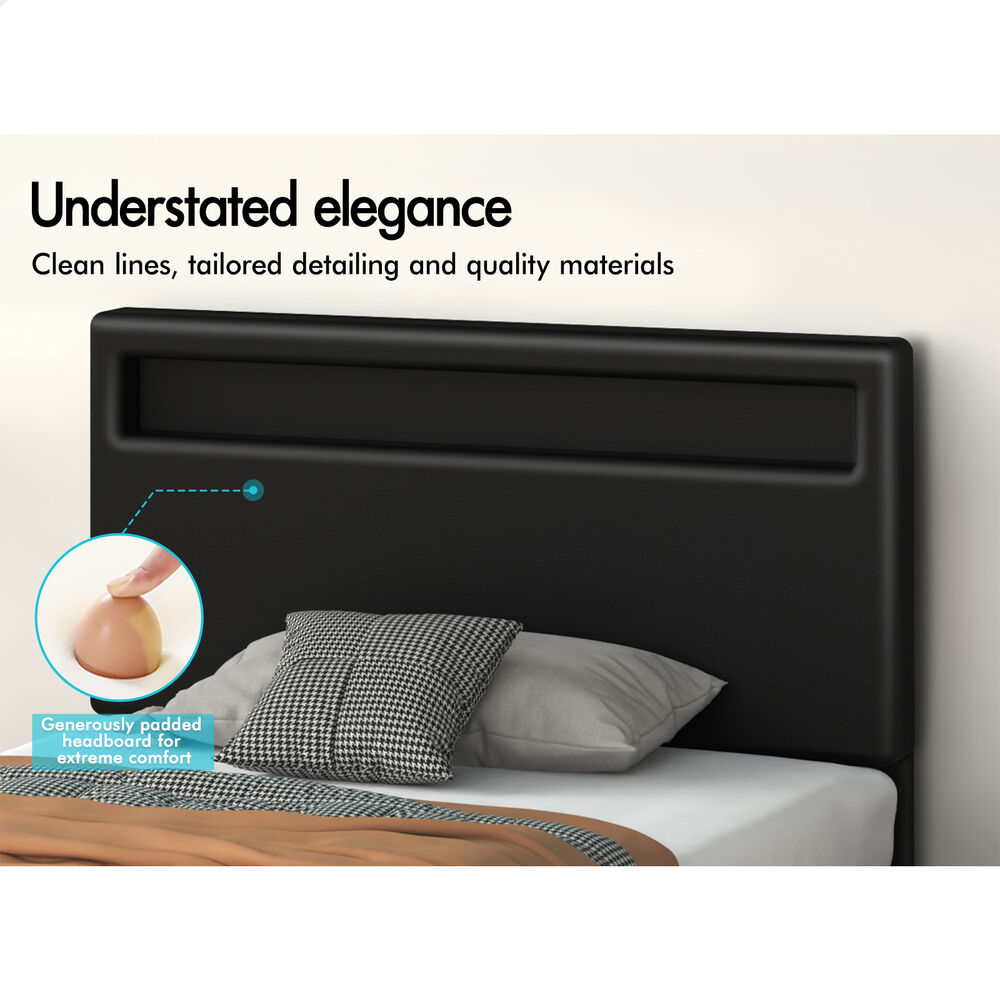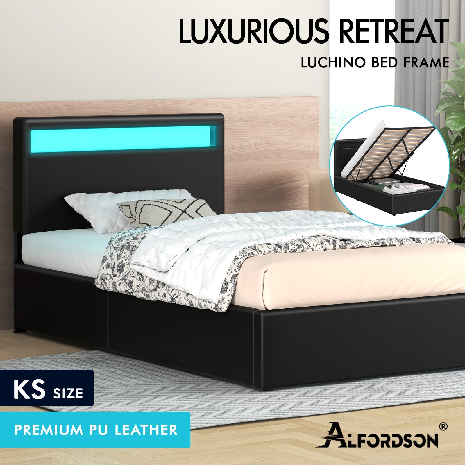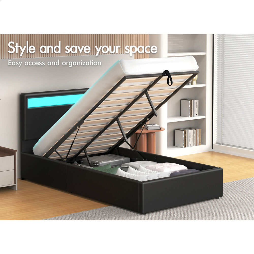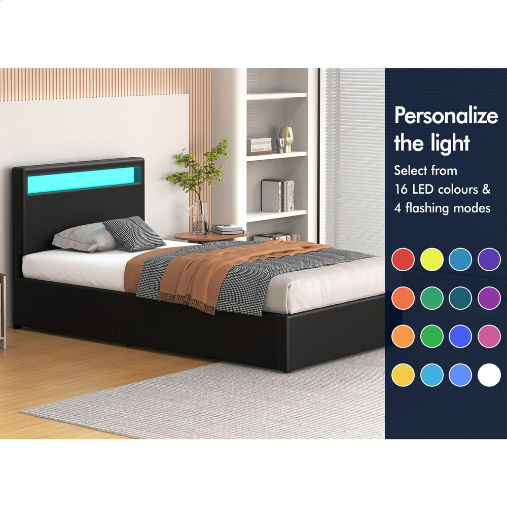 ALFORDSON Bed Frame King Single RGB LED Gas Lift Storage Base Black LUCHINO