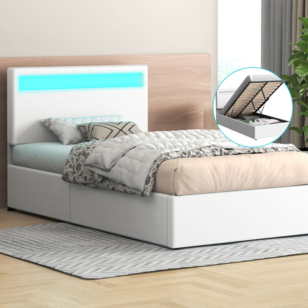 ALFORDSON Bed Frame King Single RGB LED Gas Lift Storage Base White LUCHINO