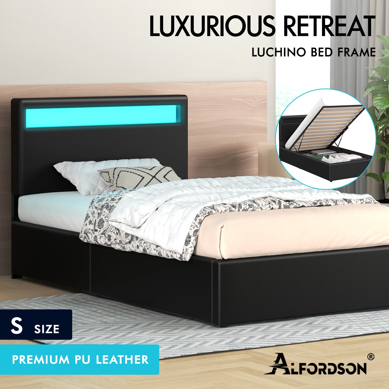 * 1x Alfordson LED Gas Lift Bed Frame