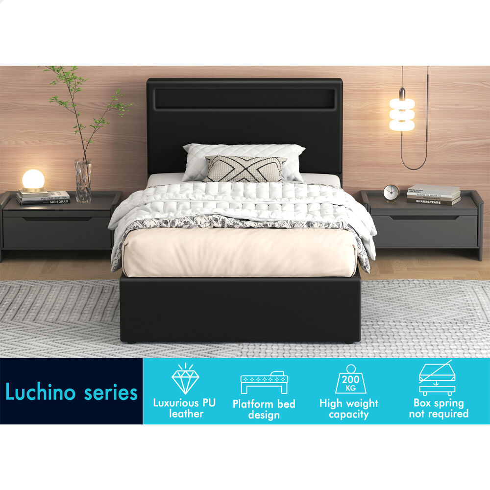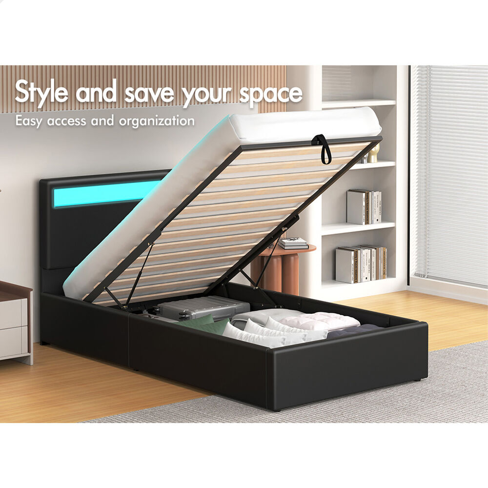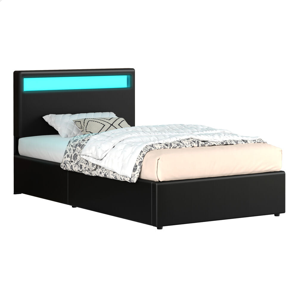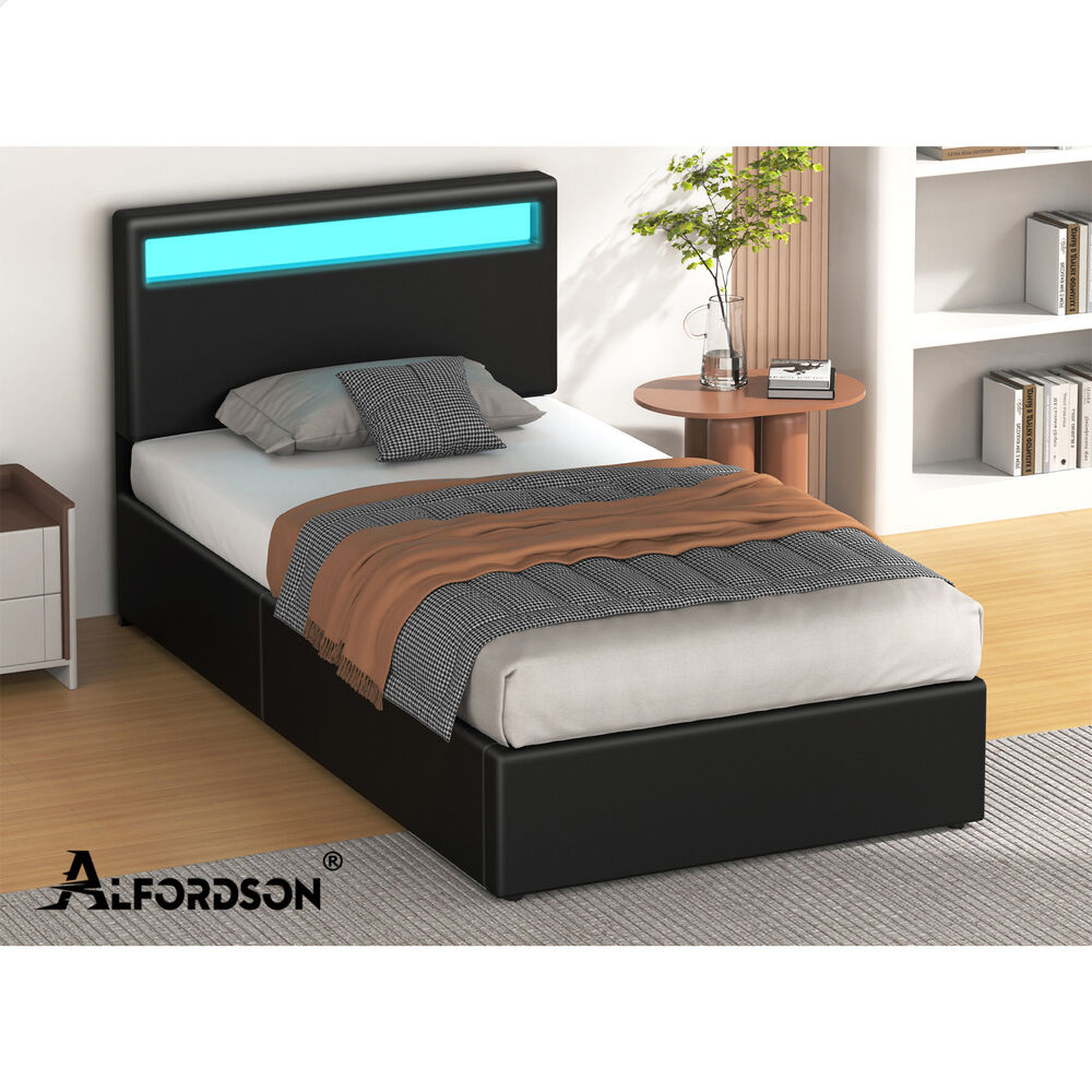 ALFORDSON Bed Frame Single Size RGB LED Gas Lift Storage Base Black LUCHINO