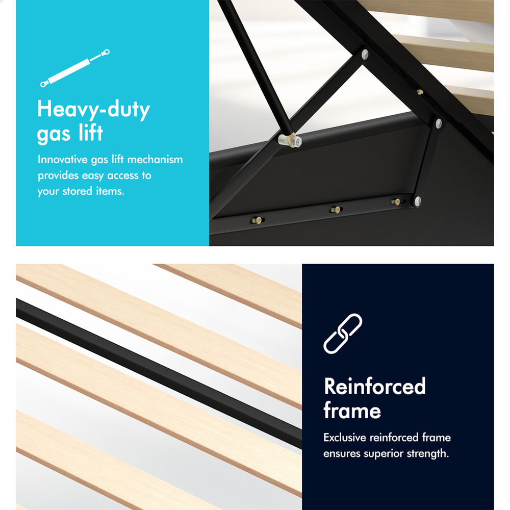 Space optimization - Our wonderful bed frame offers generous storage space without sacrificing aesthetics. Whether you live in a compact apartment or simply want to maximize your bedroom storage, our gas lift bed provides a valuable solution.