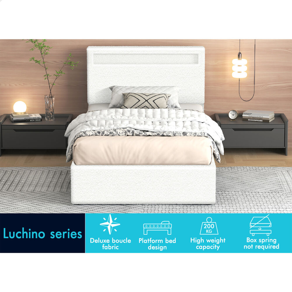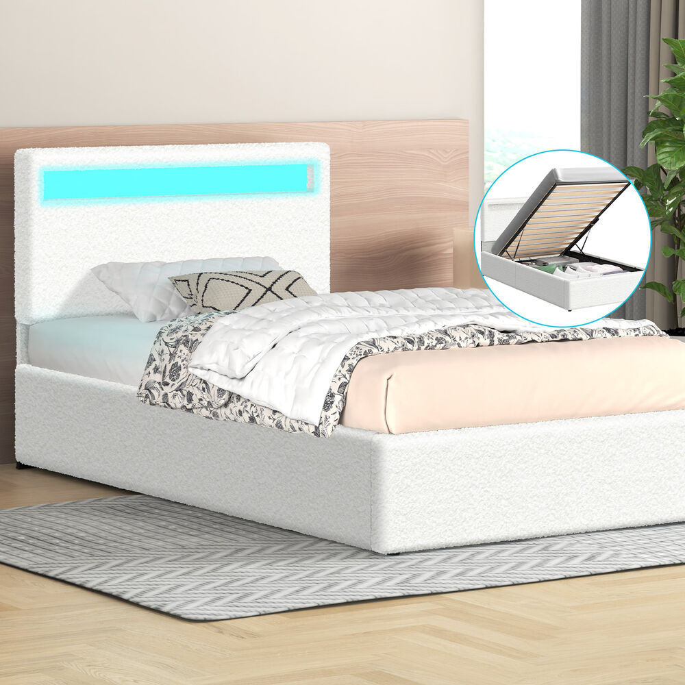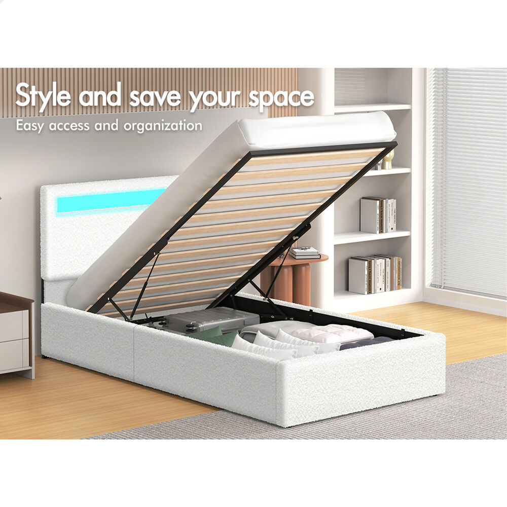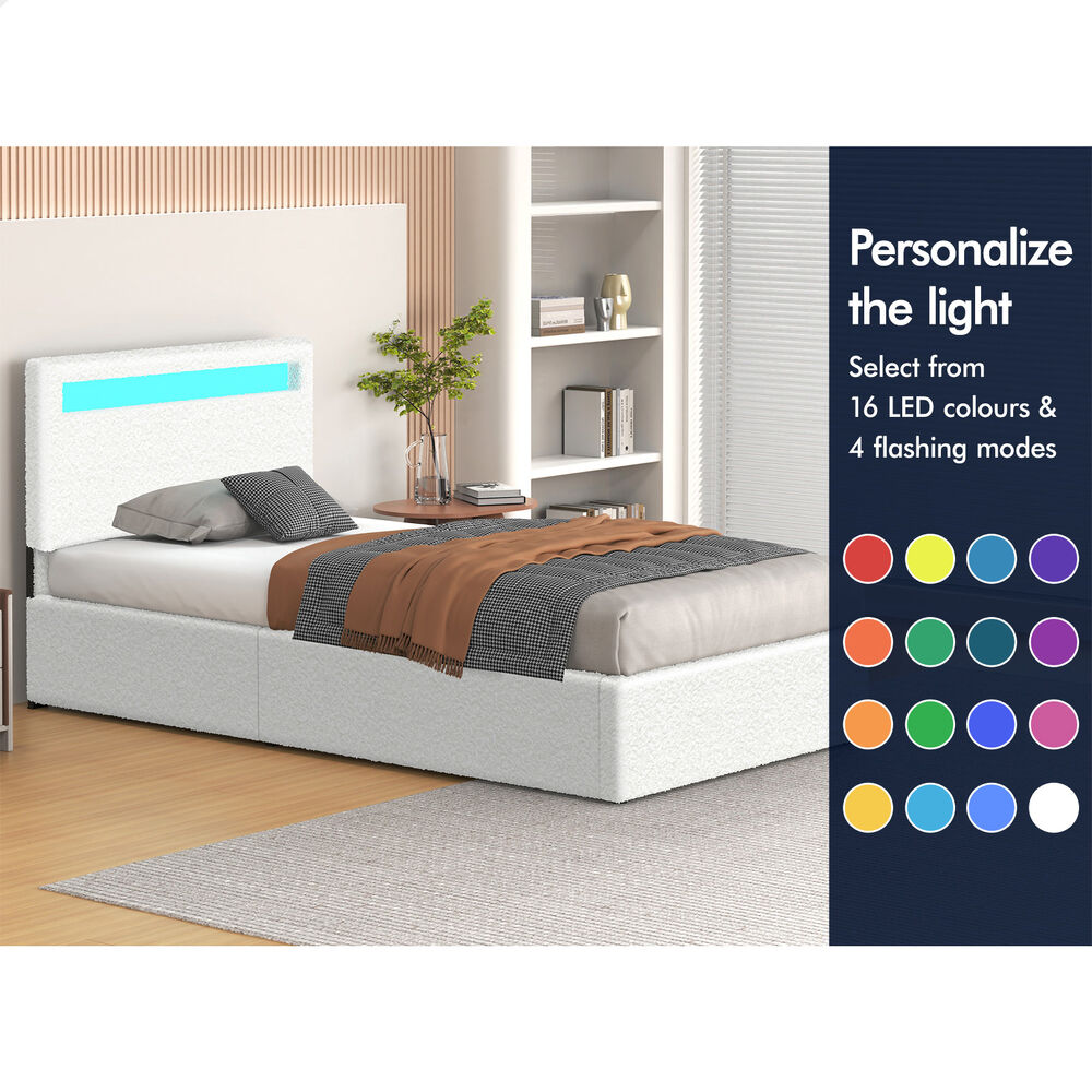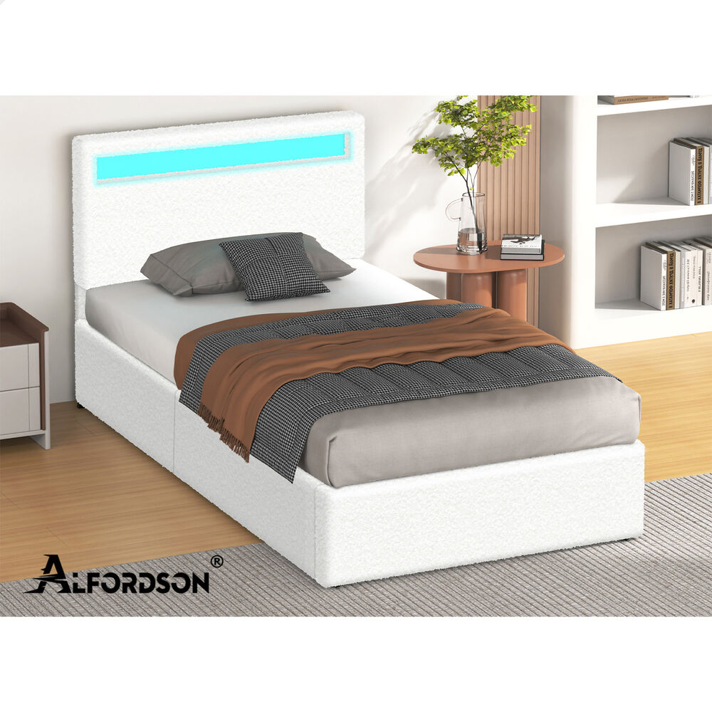 ALFORDSON Bed Frame Single Size RGB LED Gas Lift Storage Base Boucle LUCHINO