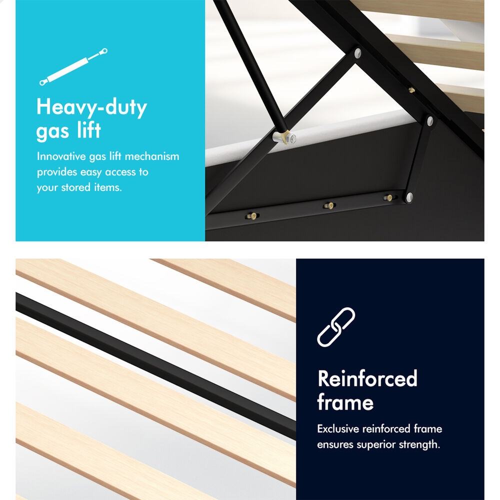 Space optimization - Our wonderful bed frame offers generous storage space without sacrificing aesthetics. Whether you live in a compact apartment or simply want to maximize your bedroom storage, our gas lift bed provides a valuable solution.