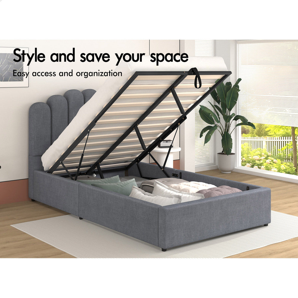 ALFORDSON Bed Frame King Single Gas Lift Storage Base Wooden Grey MILTON