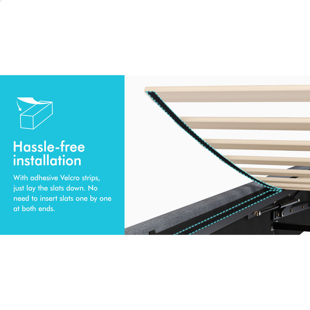 * Convenient bed slats with adhesive Velcro strips - no need to insert slats one by one at both end caps