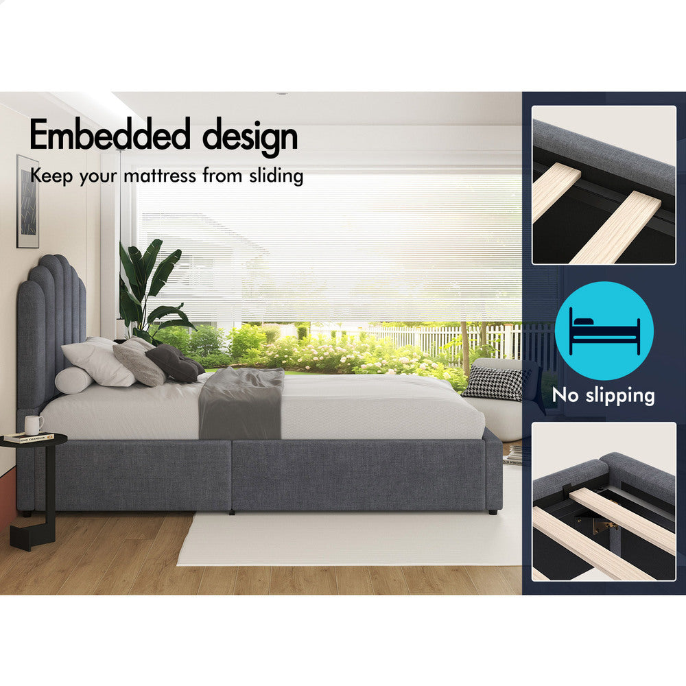 Space optimization - Our wonderful bed frame offers generous storage space without sacrificing aesthetics. Whether you live in a compact apartment or simply want to maximize your bedroom storage, our gas lift bed provides a valuable solution. Also with the unique embedded design, our bed frame will hold your mattress in place and prevent slipping and sliding.