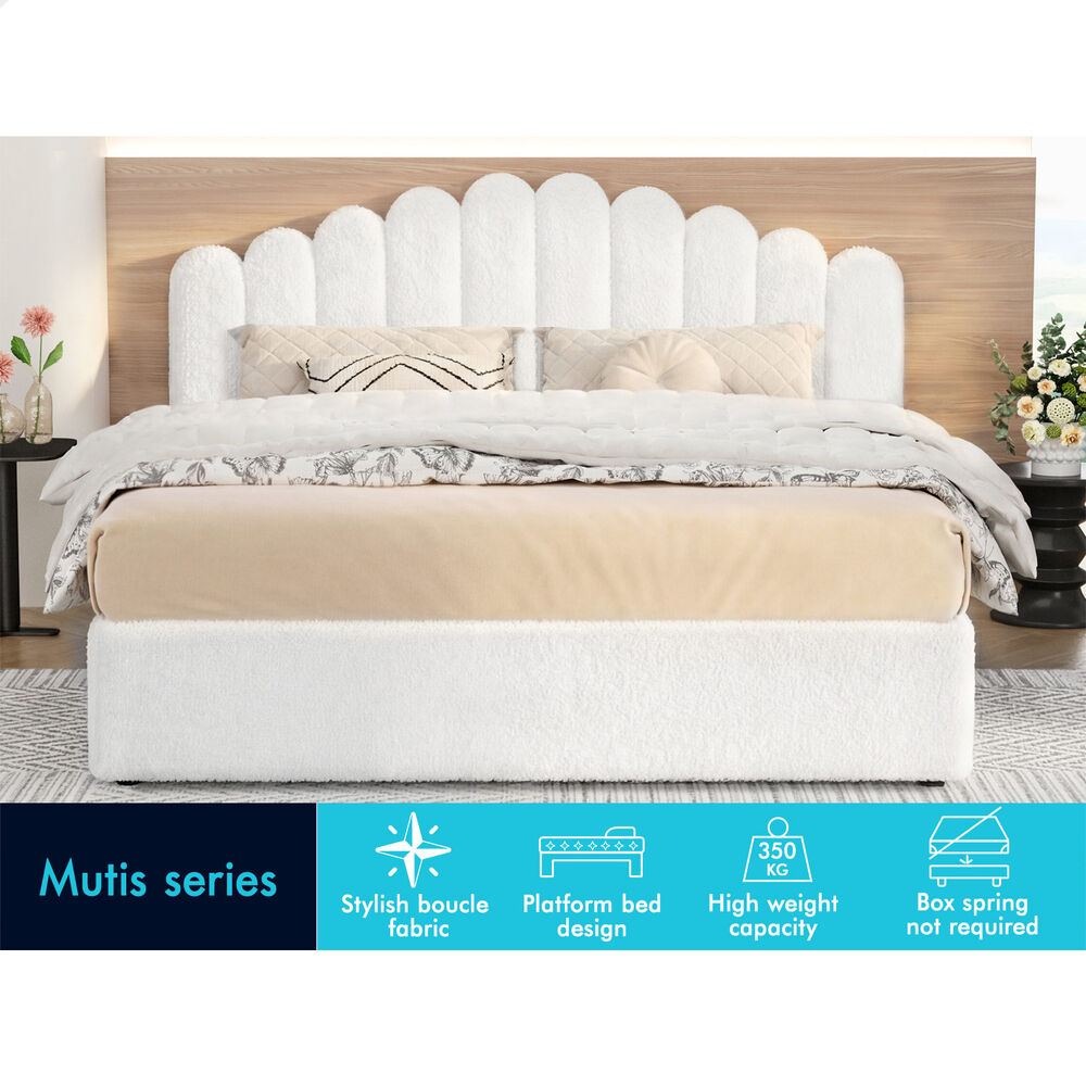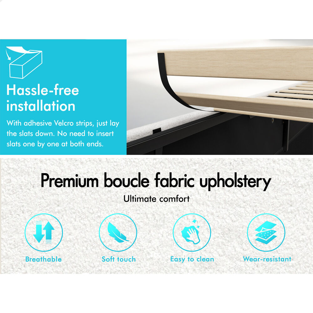 ALFORDSON Bed Frame King Size Gas Lift Storage Base Wooden Boucle MUTIS