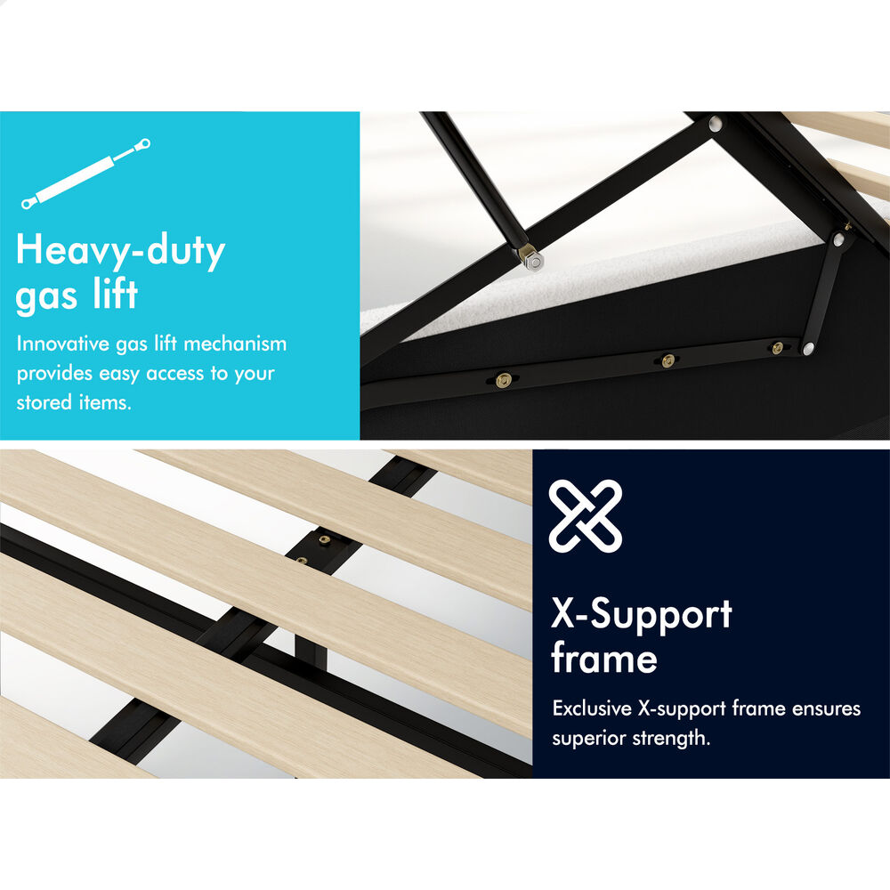 Quality counts - Constructed of durable wood slats and reinforced with exclusive X-support frame, this bed frame provides you with full sense of security. The heavy-duty gas lift mechanism allows you to effortlessly raise the mattress platform, providing easy access to the storage compartment. What's more, with adhesive Velcro strips, you can just lay the slats down, without inserting slats one by one at both end caps. Enjoy hassle-free installation!