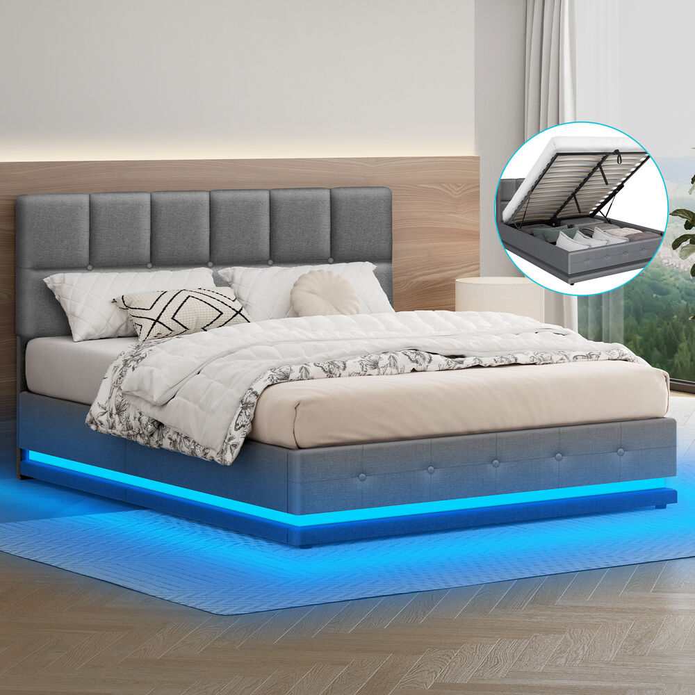 ALFORDSON Bed Frame Double Size Platform RGB LED Gas Lift Base Storage Grey