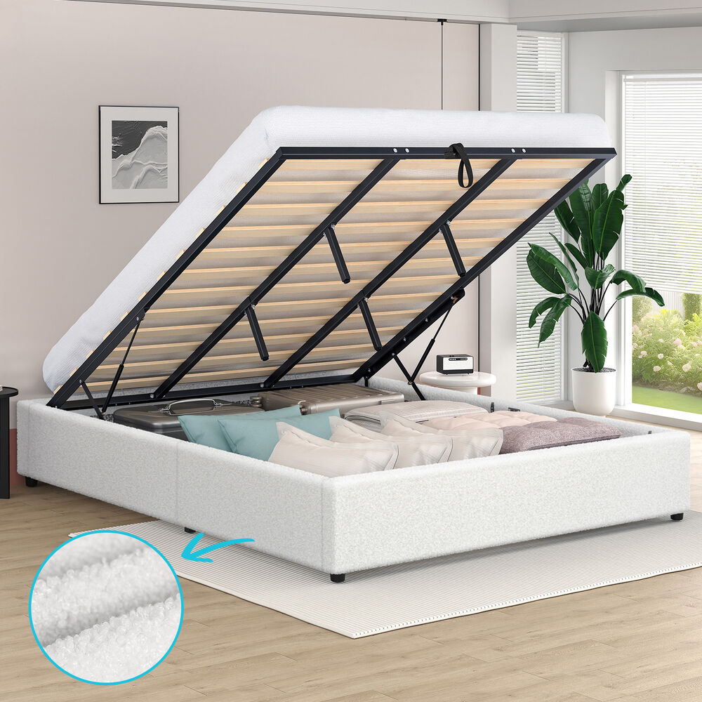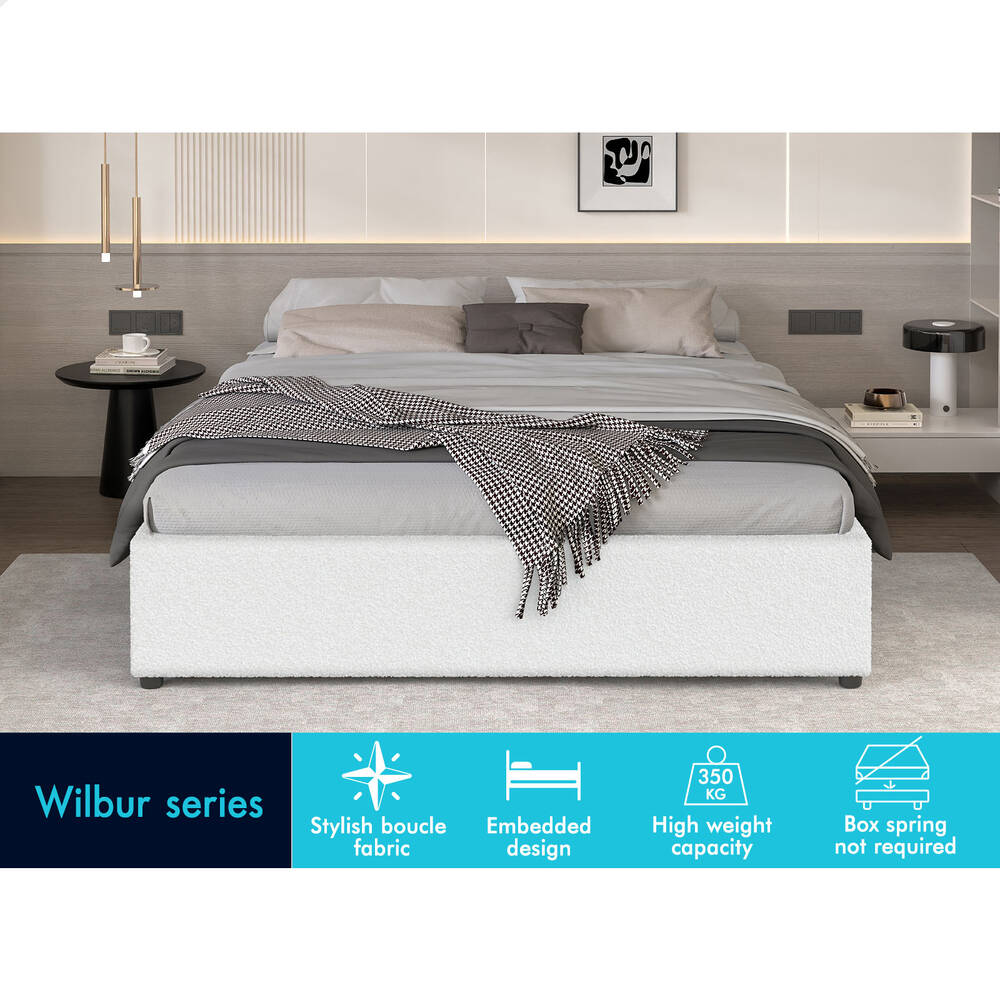 ALFORDSON Bed Frame King Size Gas Lift Storage Mattress Base Boucle WILBUR