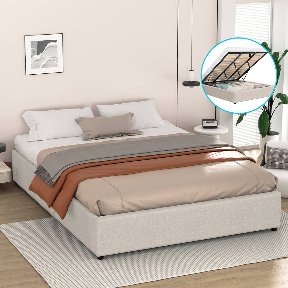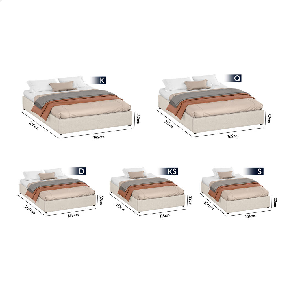 ALFORDSON Bed Frame King Size Gas Lift Storage Mattress Base Beige WILBUR