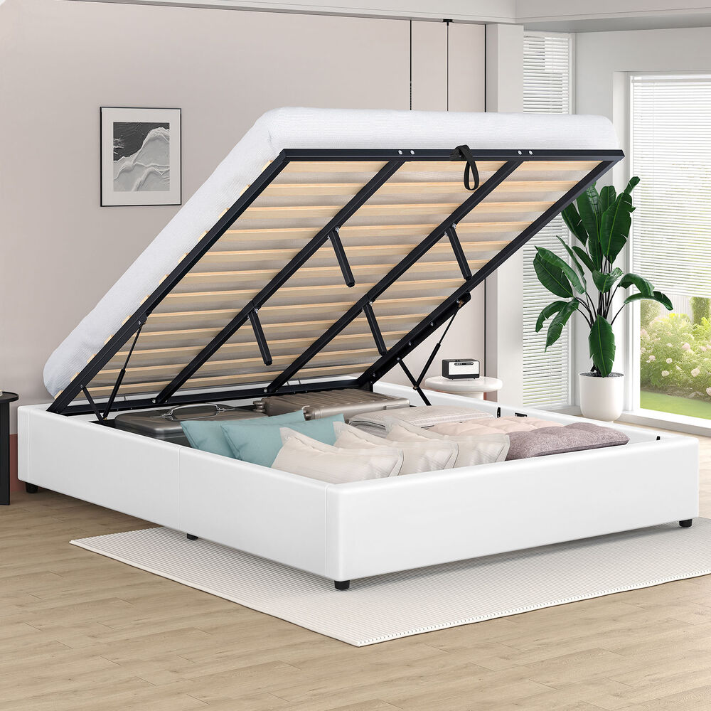 ALFORDSON Bed Frame King Size Gas Lift Storage Mattress Base White WILBUR