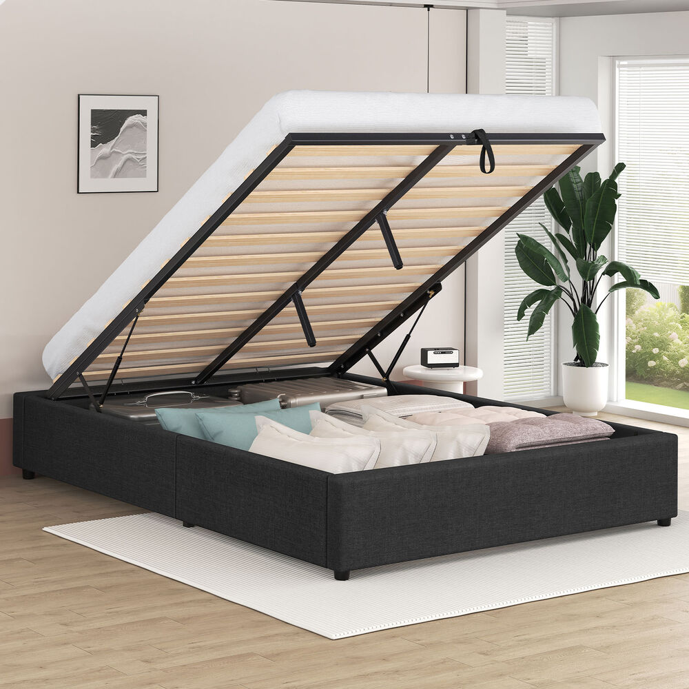 ALFORDSON Bed Frame Queen Size Gas Lift Storage Mattress Base Charcoal WILBUR