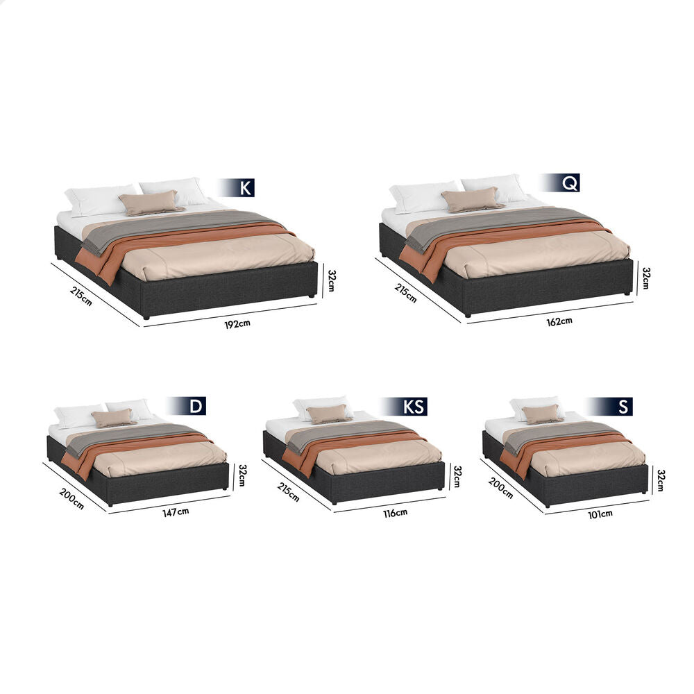 ALFORDSON Bed Frame Single Size Gas Lift Storage Mattress Base Charcoal WILBUR
