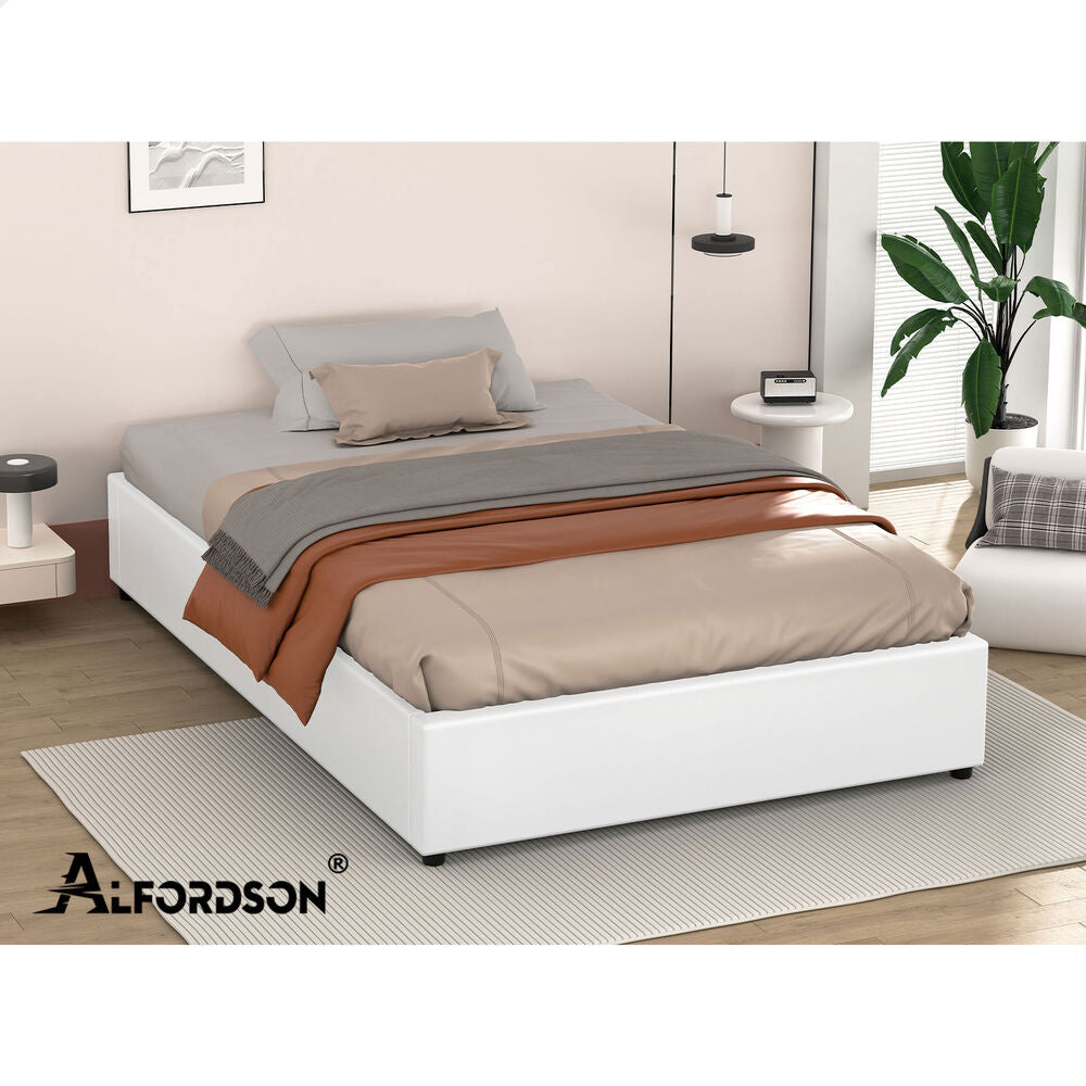 ALFORDSON Bed Frame Single Size Gas Lift Storage Mattress Base White WILBUR