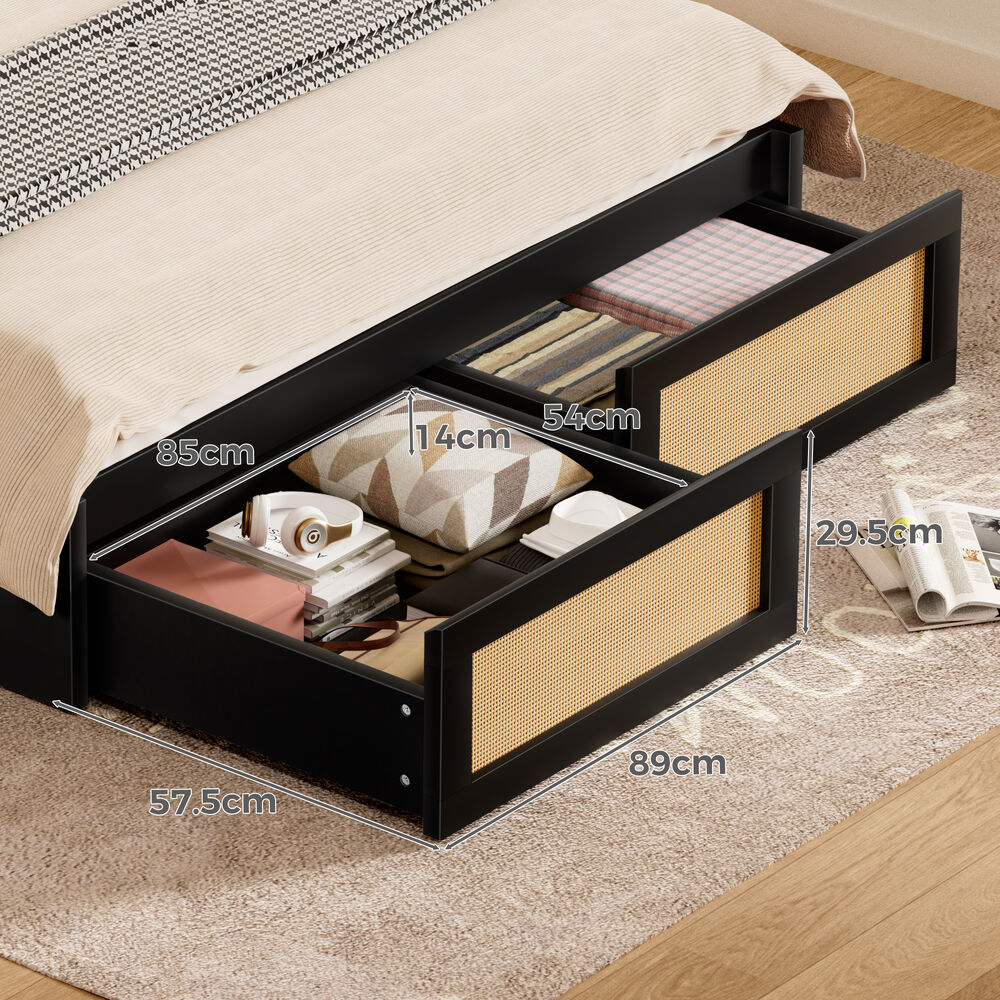 ALFORDSON Wooden Bed Frame King Size Rattan Bed Base with Storage Drawers Black