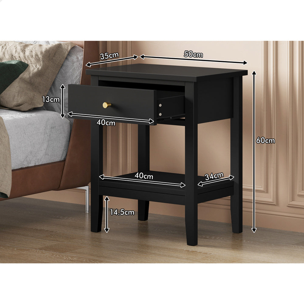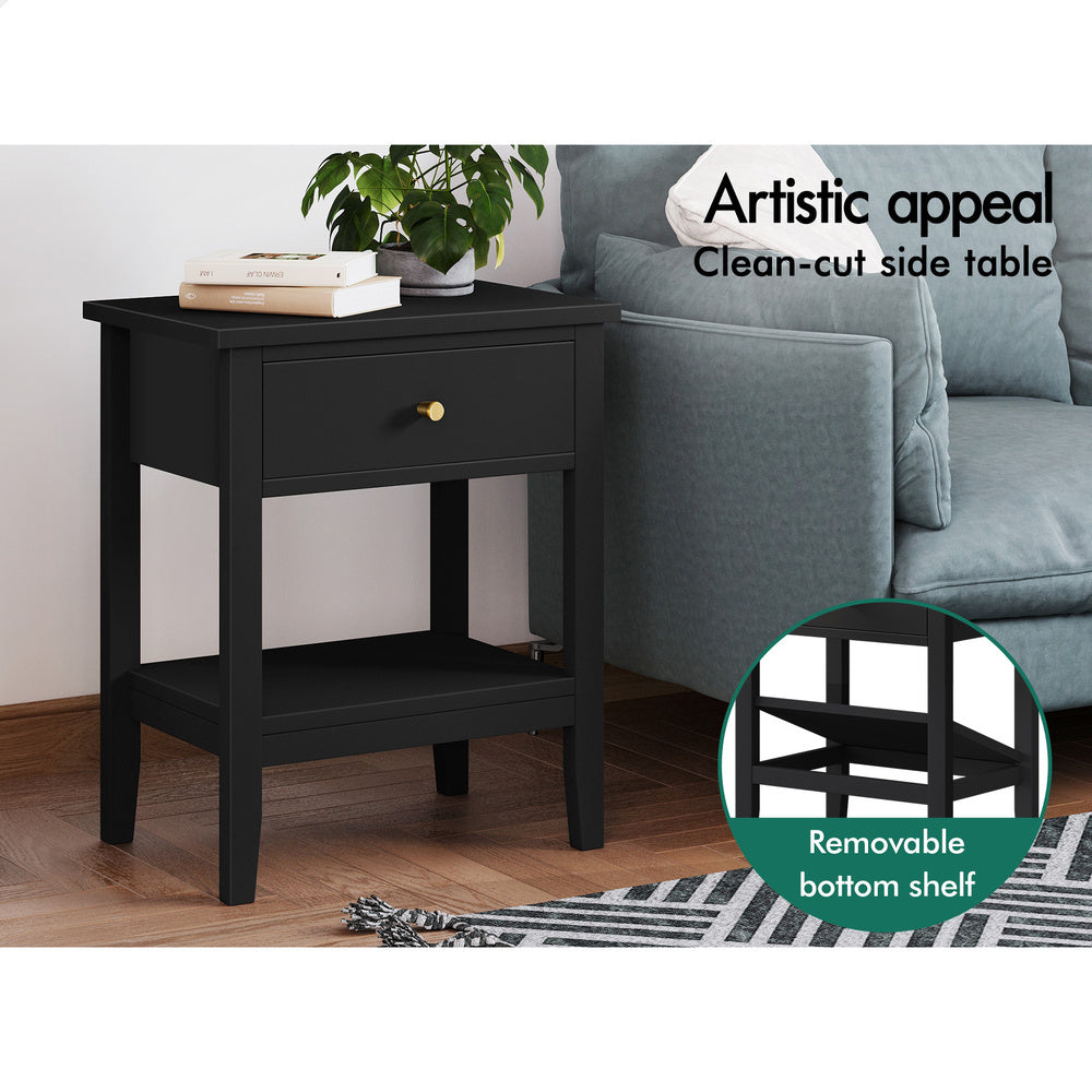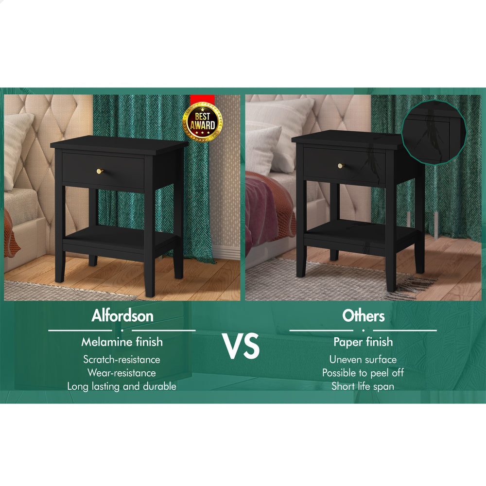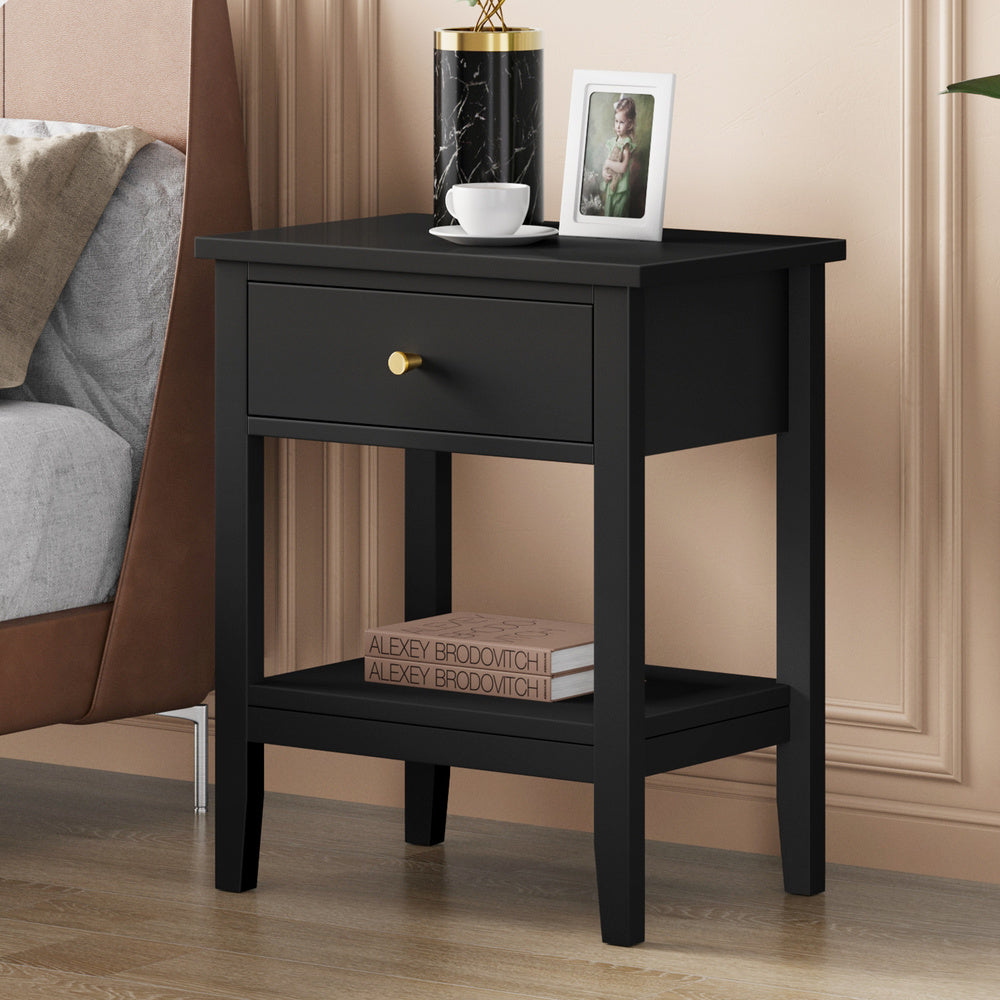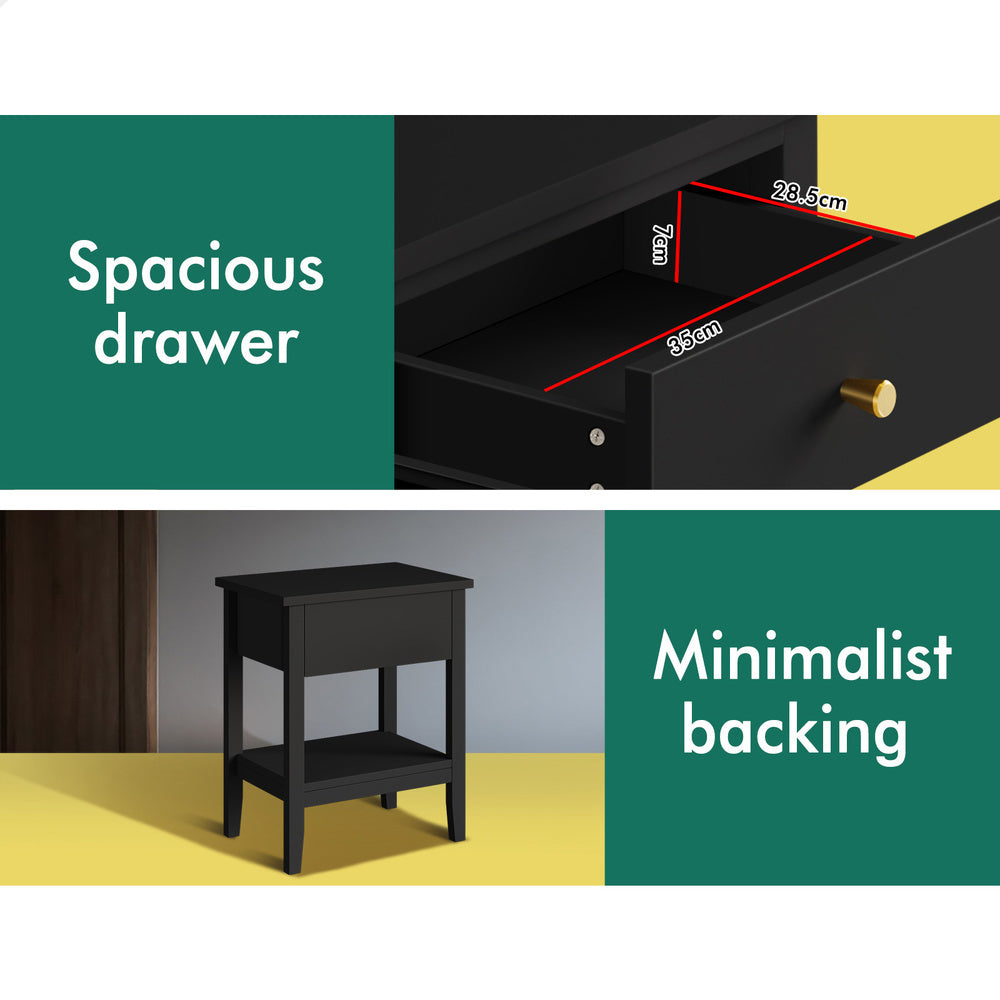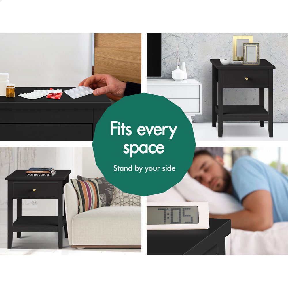 ALFORDSON Bedside Table Hamptons Nightstand Storage Side End 1 Drawer Black