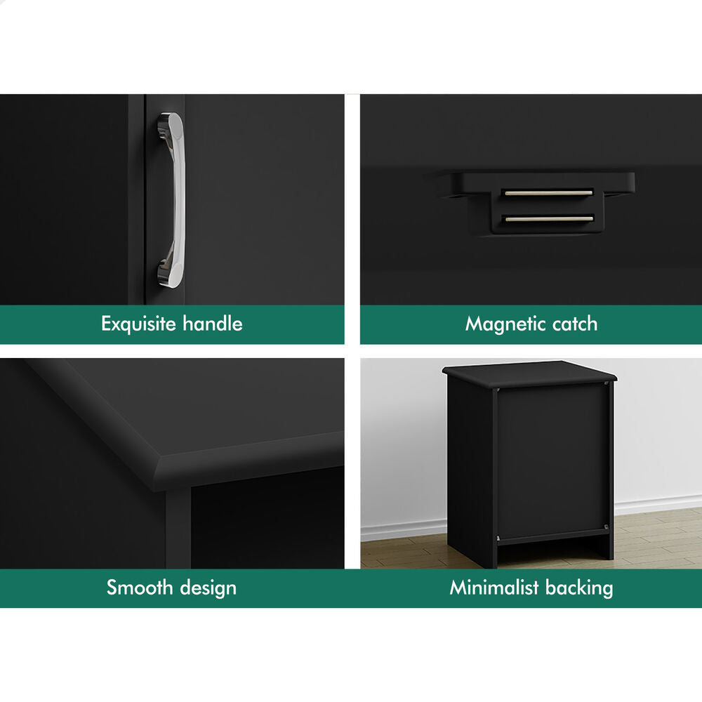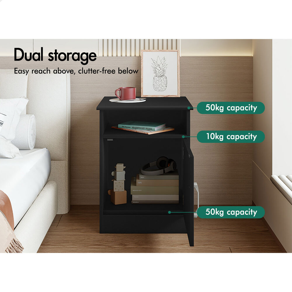 ALFORDSON 2x Bedside Table Storage Cabinet Side End Nightstand Black