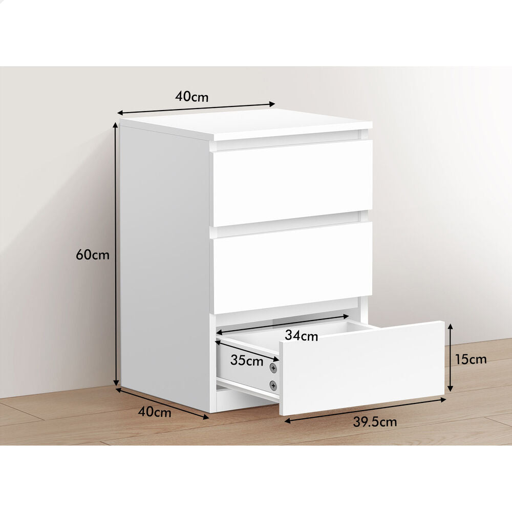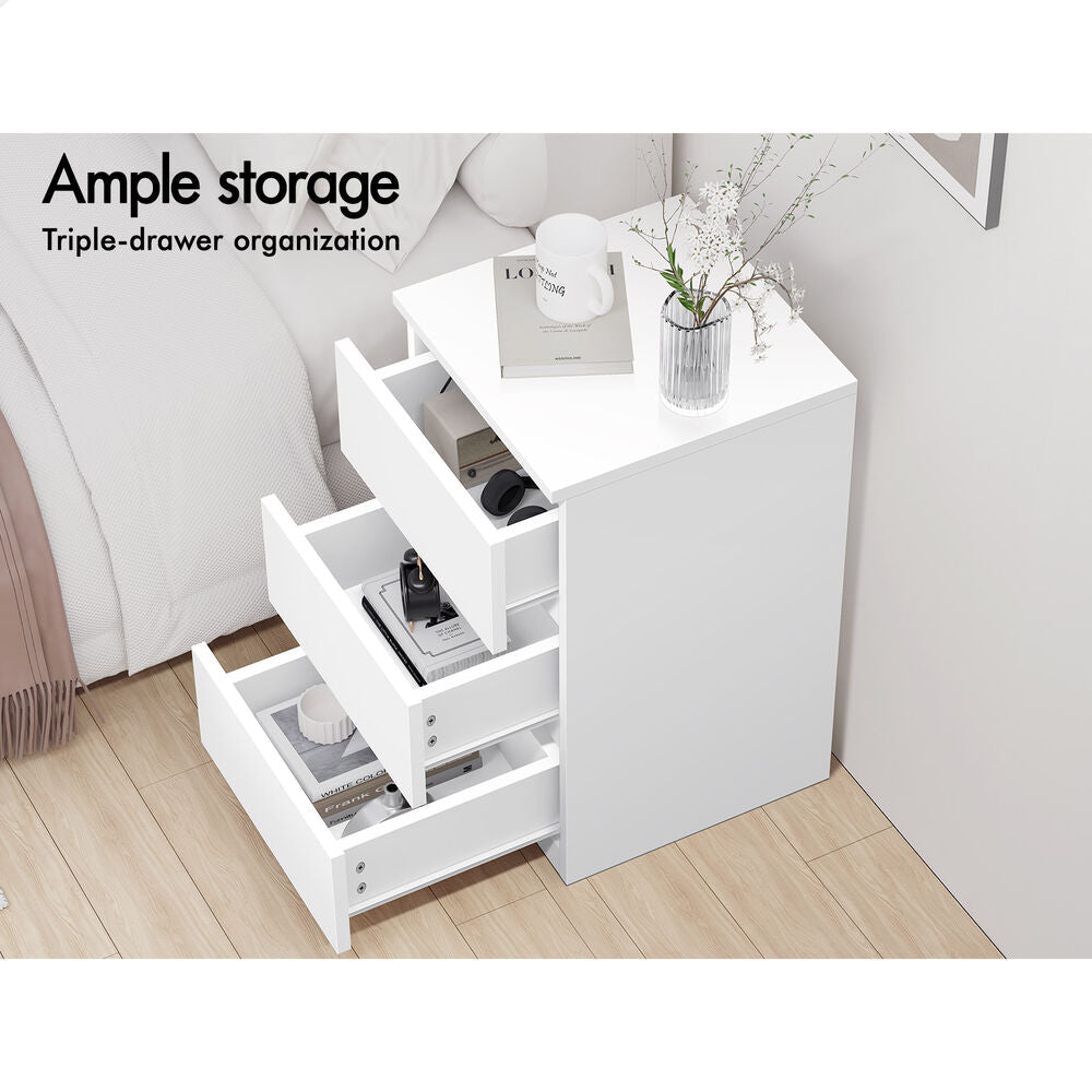 ALFORDSON 2x Bedside Table Nightstand 3 Drawers Side End Table White