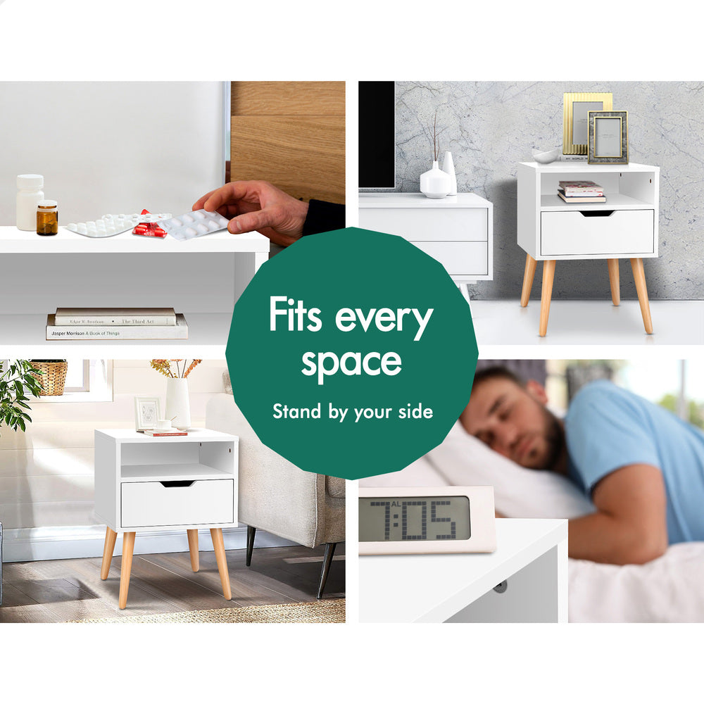 ALFORDSON Bedside Table Nightstand Storage Cabinet Scandinavian White