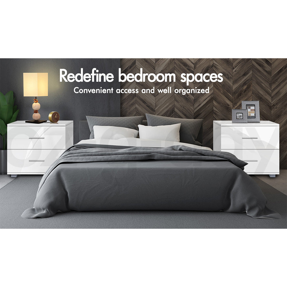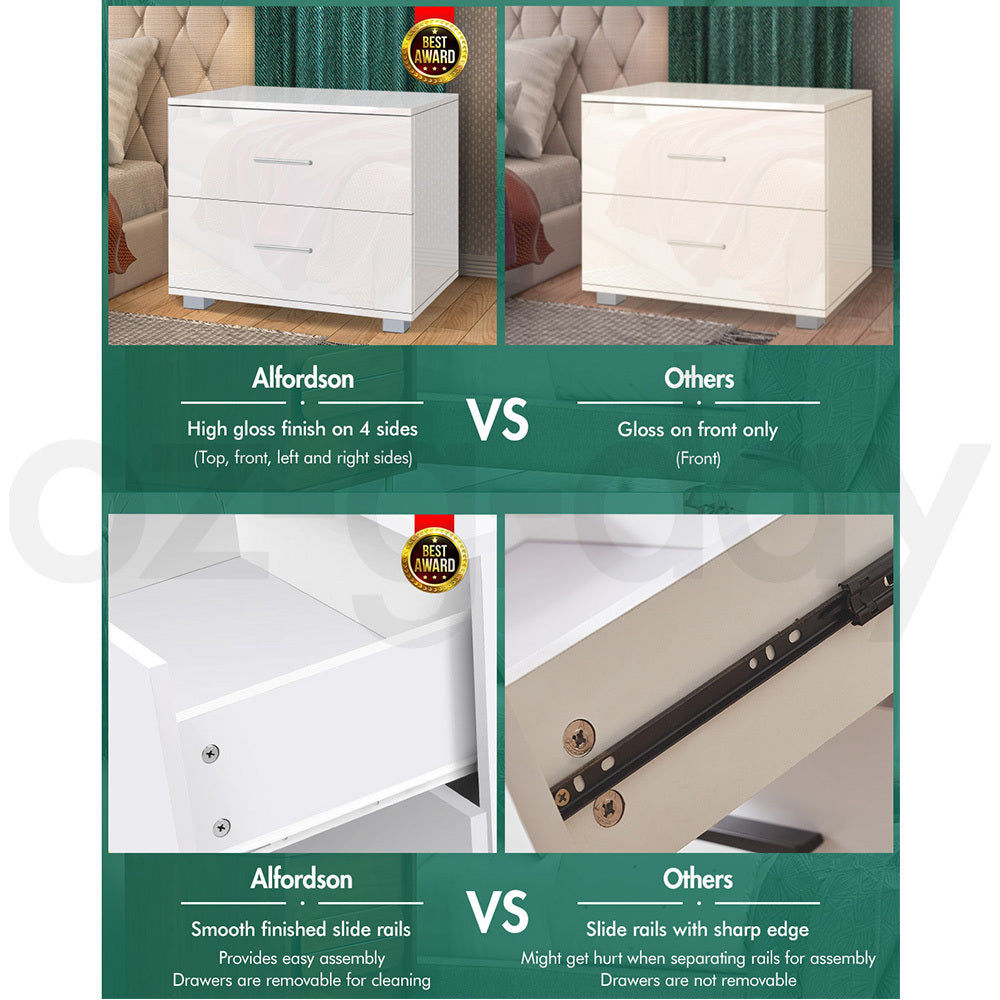 ALFORDSON Bedside Table Nightstand 4 Side High Gloss White Side End Table