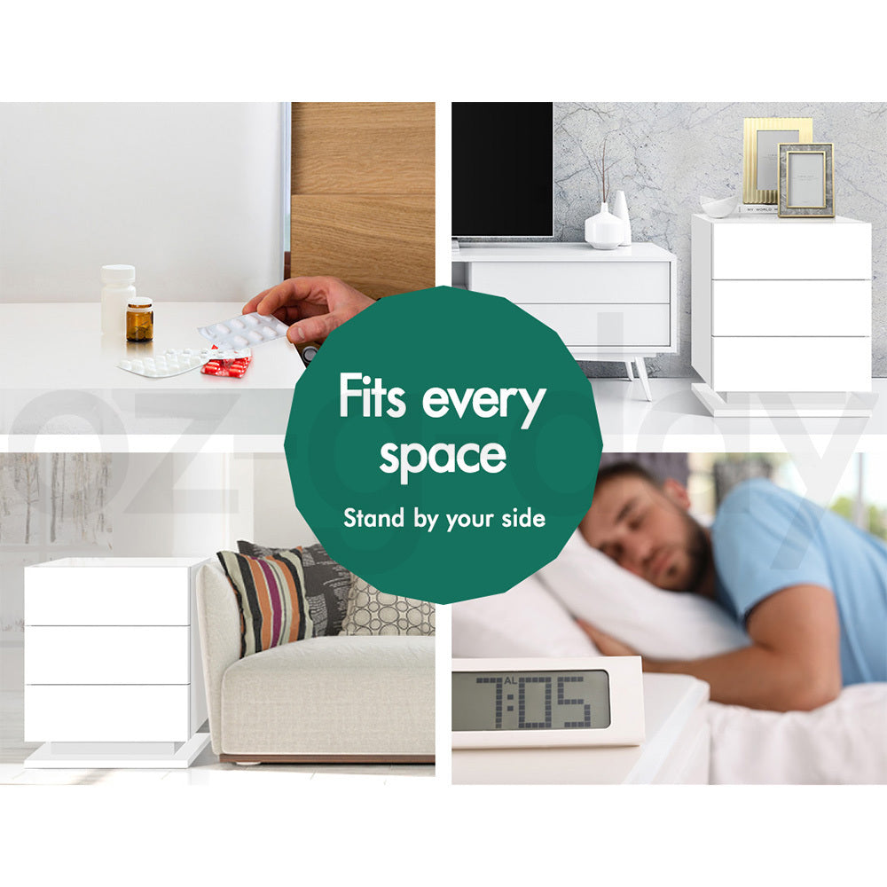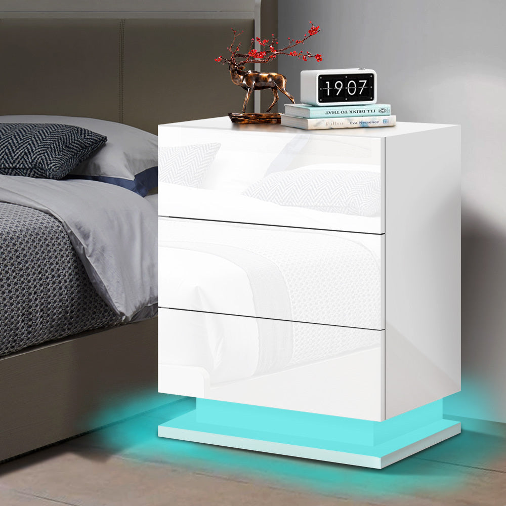 ALFORDSON Bedside Table RGB LED Nightstand 3 Drawers 4 Side High Gloss White