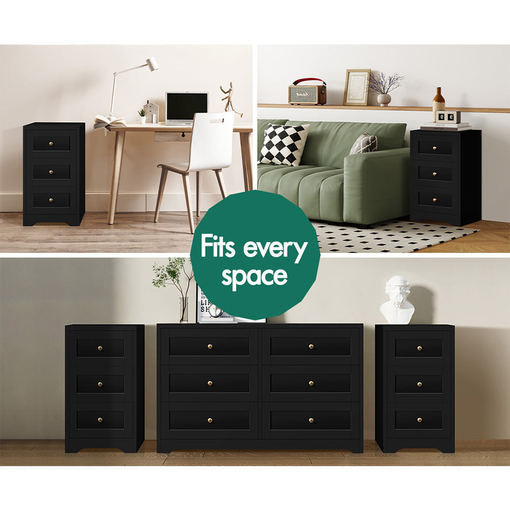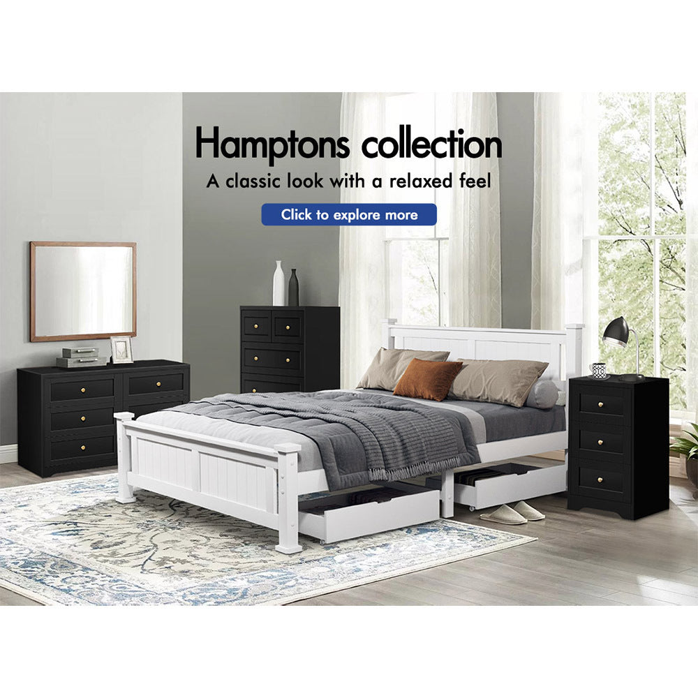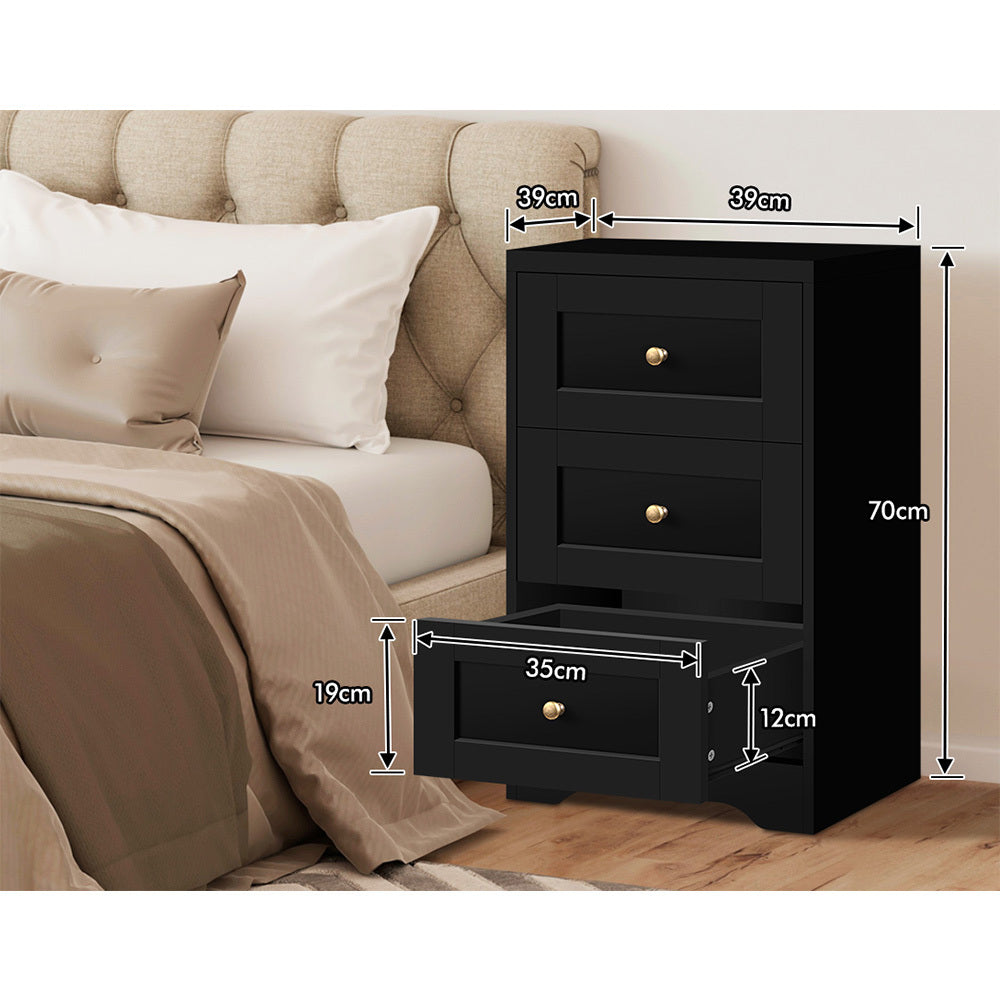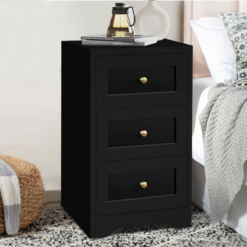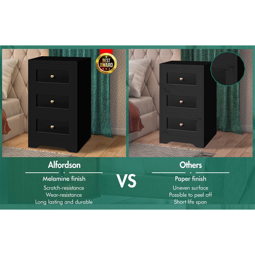 ALFORDSON Bedside Table Hamptons Storage Nightstand Side End Cabinet Black