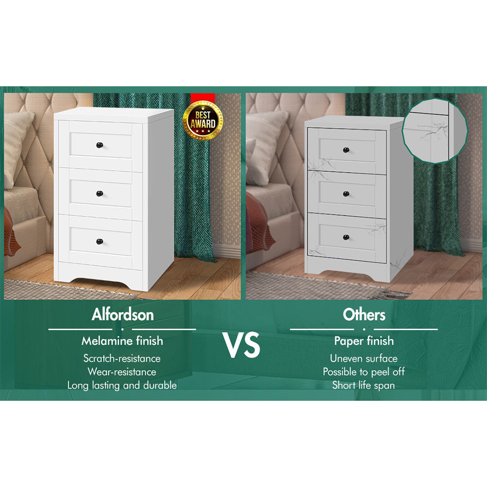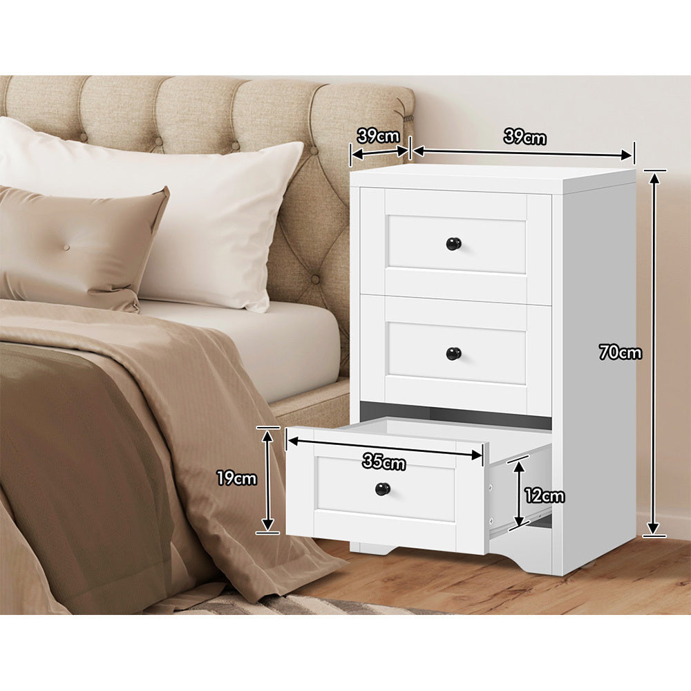 ALFORDSON Bedside Table Hamptons Storage Nightstand Side End Cabinet White