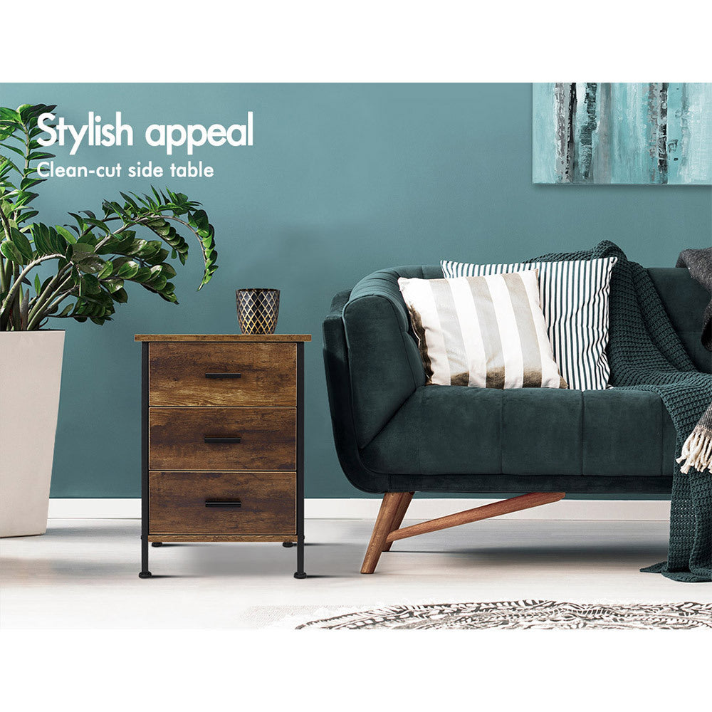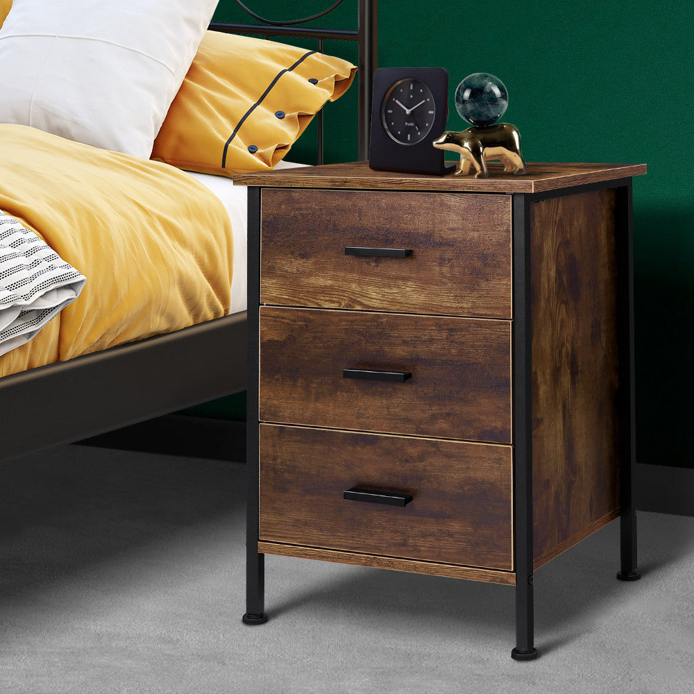 The bedside table can serve as a functional addition at the side of your bed. It provides a surface to place necessary items like a lamp, a laptop, a book, a glass of water, medicine or vitamin pills, or whatever else you may want to keep close by the bed. Not least, featuring 3 spacious drawers, it provides ample storage so that those items you store away in the drawers won't gather dust.