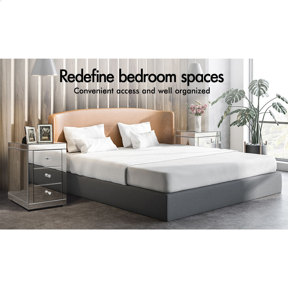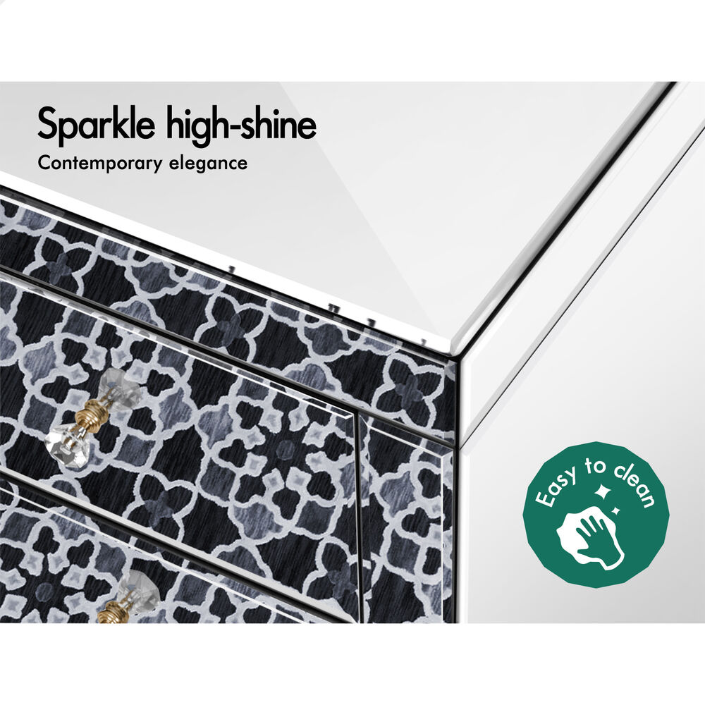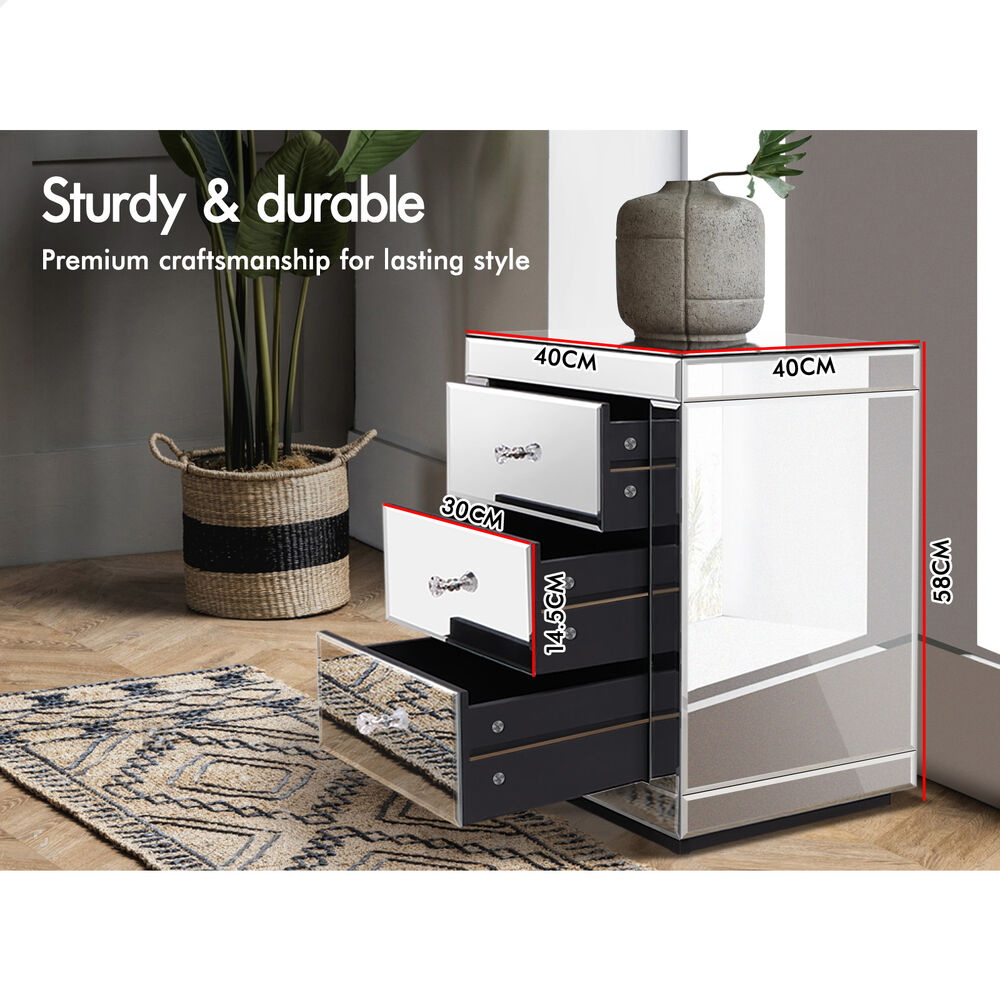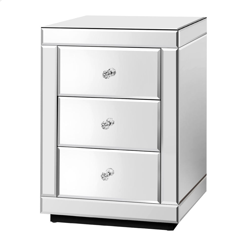 ALFORDSON Mirrored Bedside Table 3 Drawers Silver