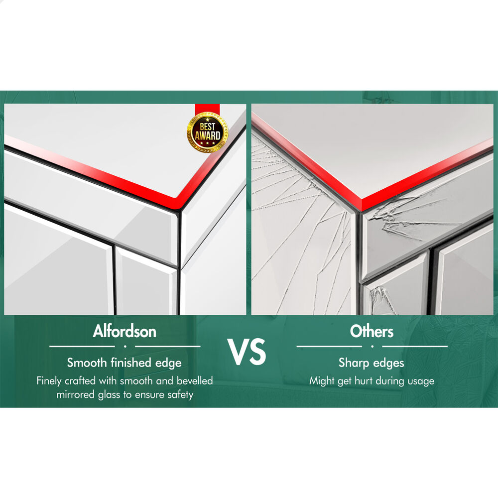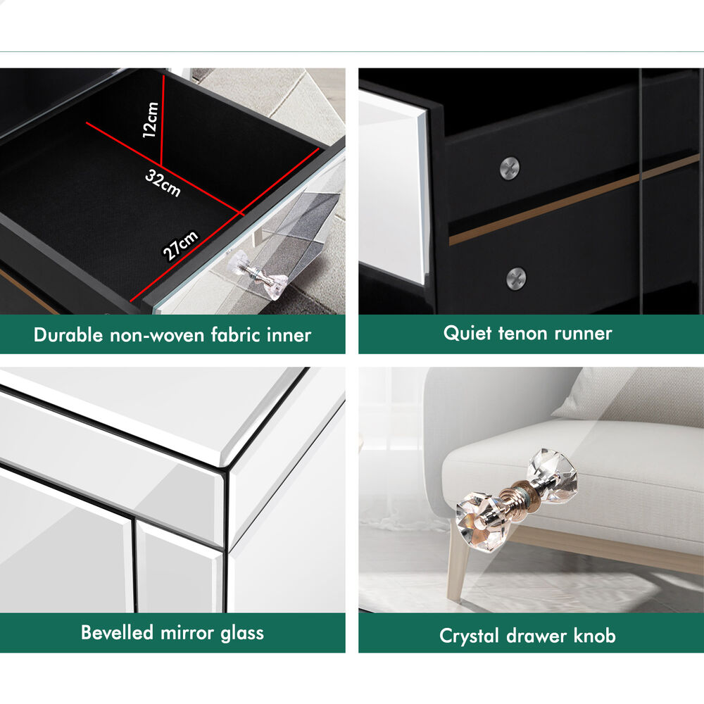 Finely crafted with smooth and bevelled mirrored glass, as well as superior E1 grade MDF board, this bedside table is designed to be highly durable. It is also easy to maintain and clean. A protective packaging is apllied to the bedside table surface to prevent scratches and damaged during shipping.