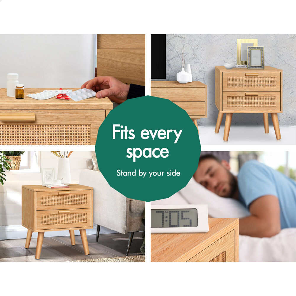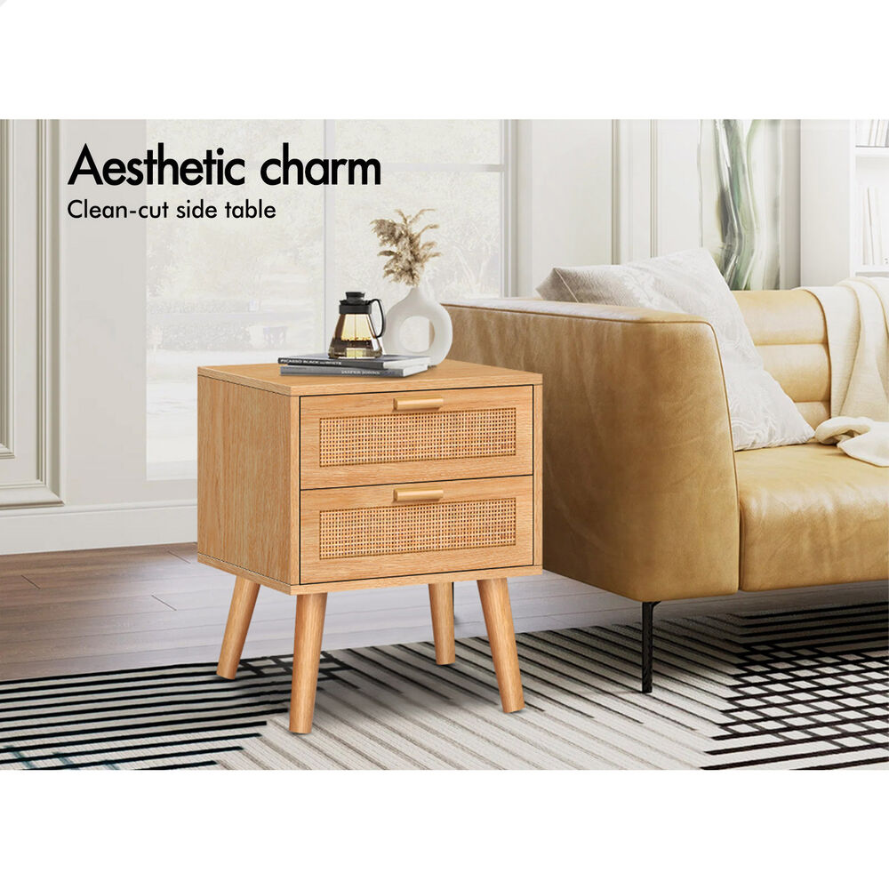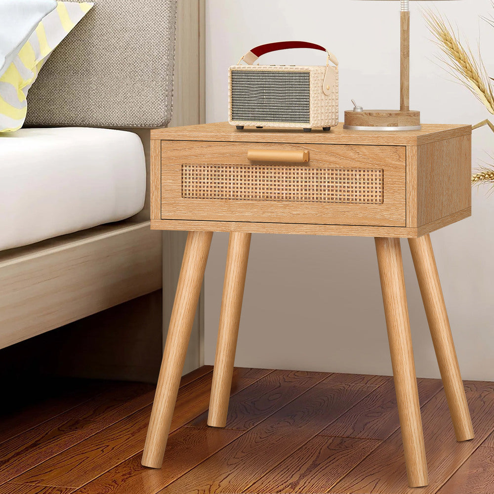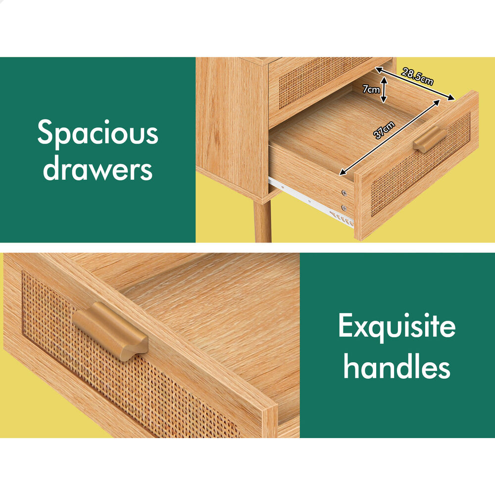 ALFORDSON Bedside Table Nightstand Side Storage Rattan Oak