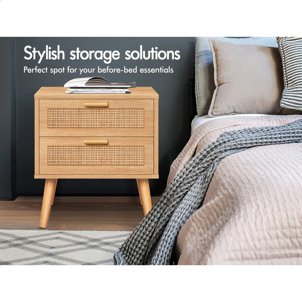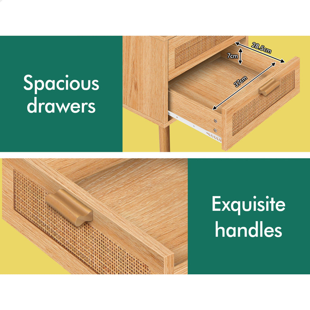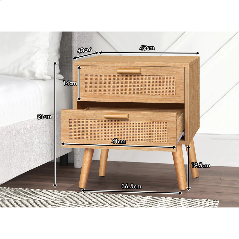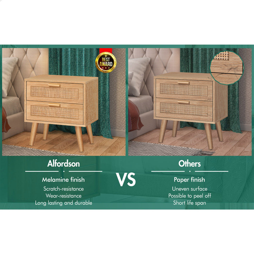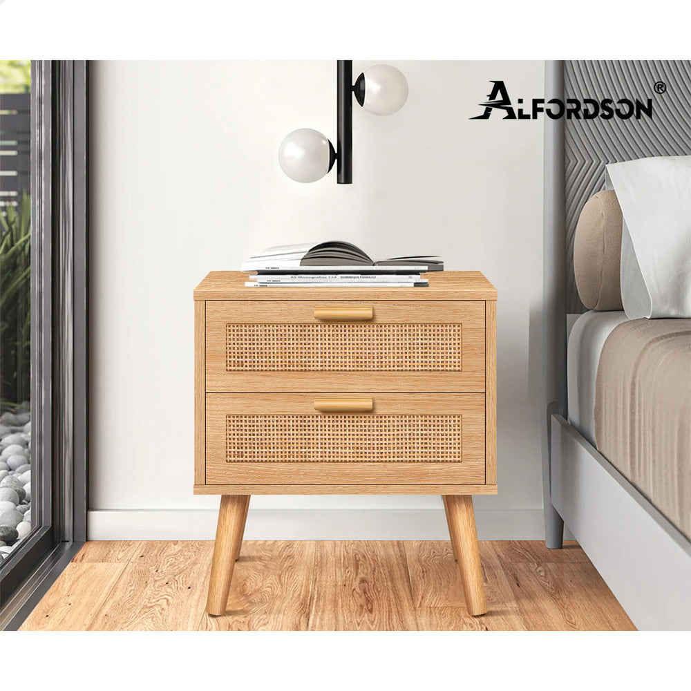 ALFORDSON Bedside Table Nightstand Side Cabinet Rattan Wood