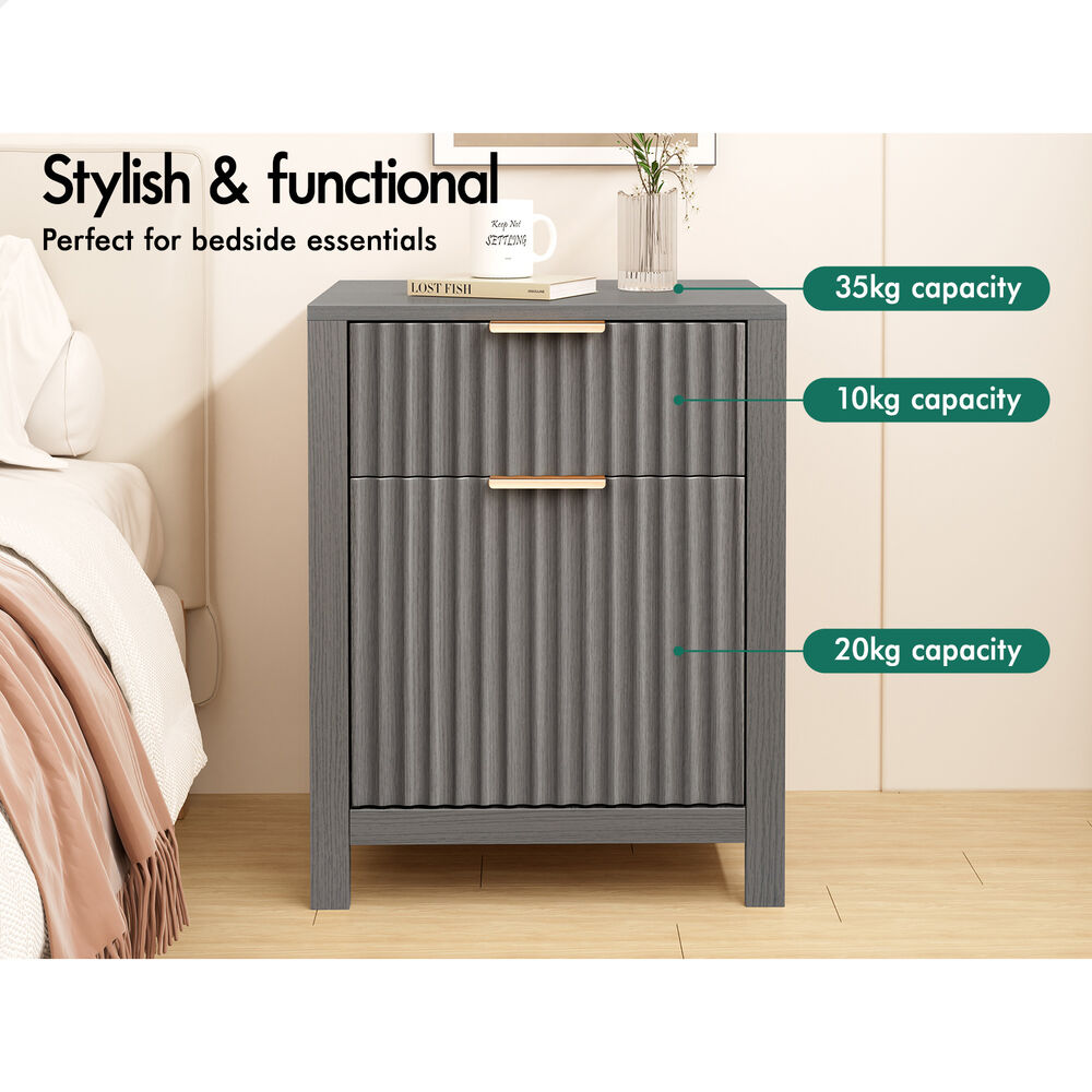 ALFORDSON Bedside Table Nightstand Side Storage 2 Drawers Cabinet Grey