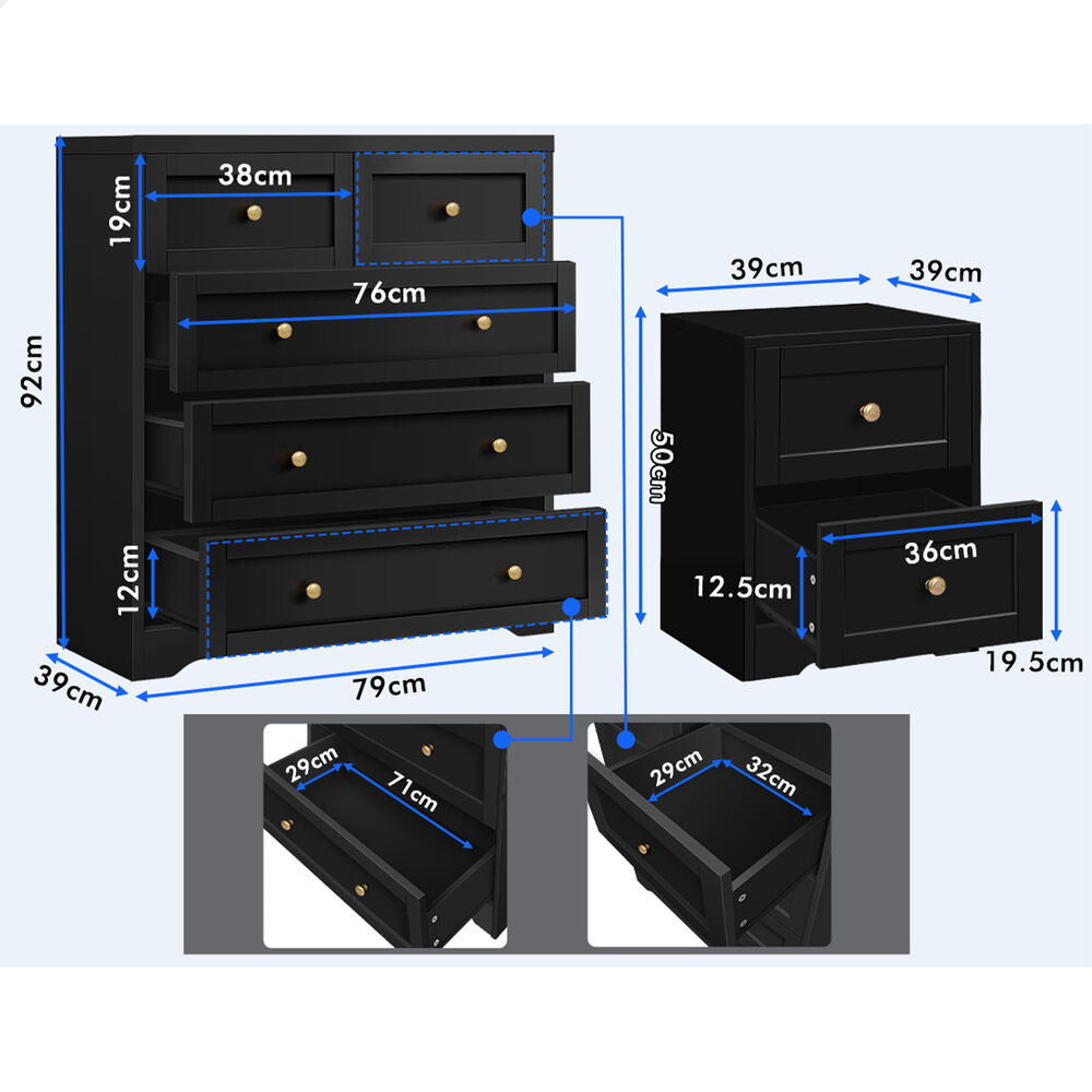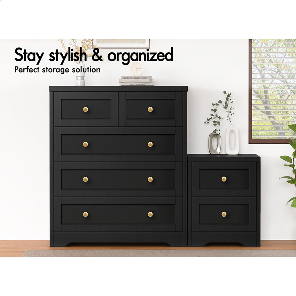 ALFORDSON 5 Chest of Drawers Bedside Table Hamptons Bedroom Storage Black