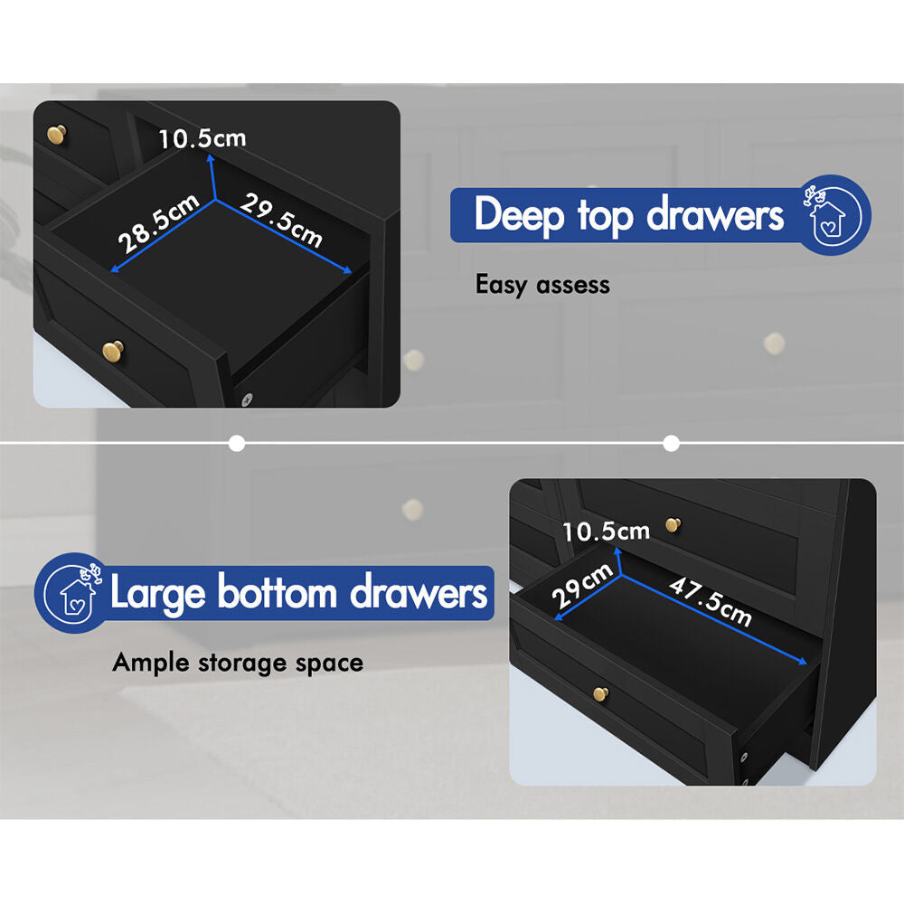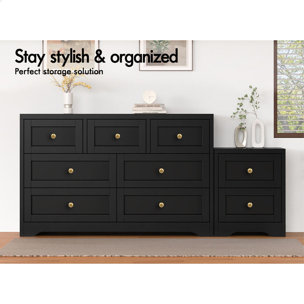 ALFORDSON 7 Chest of Drawers Bedside Table Hamptons Bedroom Storage Black