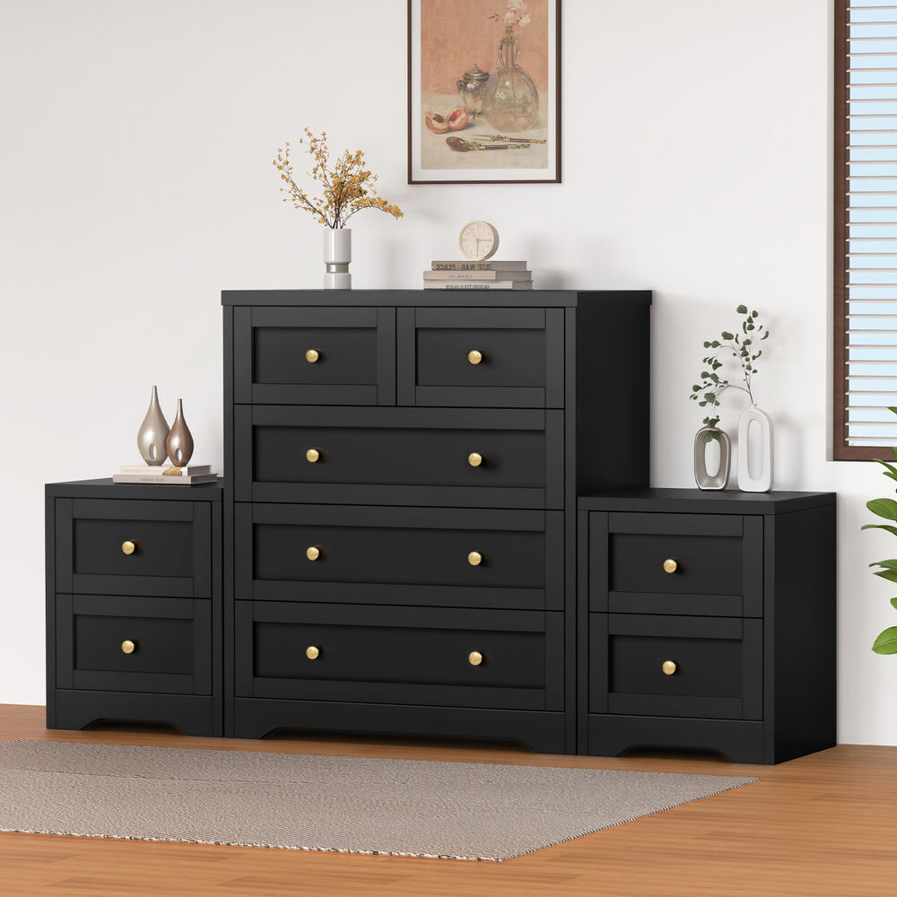 Maximize functionality - Featuring spacious drawers, both chest and drawers and bedside tables provide ample storage to neatly store all your belongings. You can easily separate and organize different items, ensuring everything has its place and stays dust-free. Essentials like a mirror, jewelry box, houseplants, photos of your loved ones can also be put on the top of chest of drawers, while the bedside table serves as functional addition to place necessary items like a lamp, a book, a glass of water, alarm clock, or whatever else you may want to keep close by the bed.