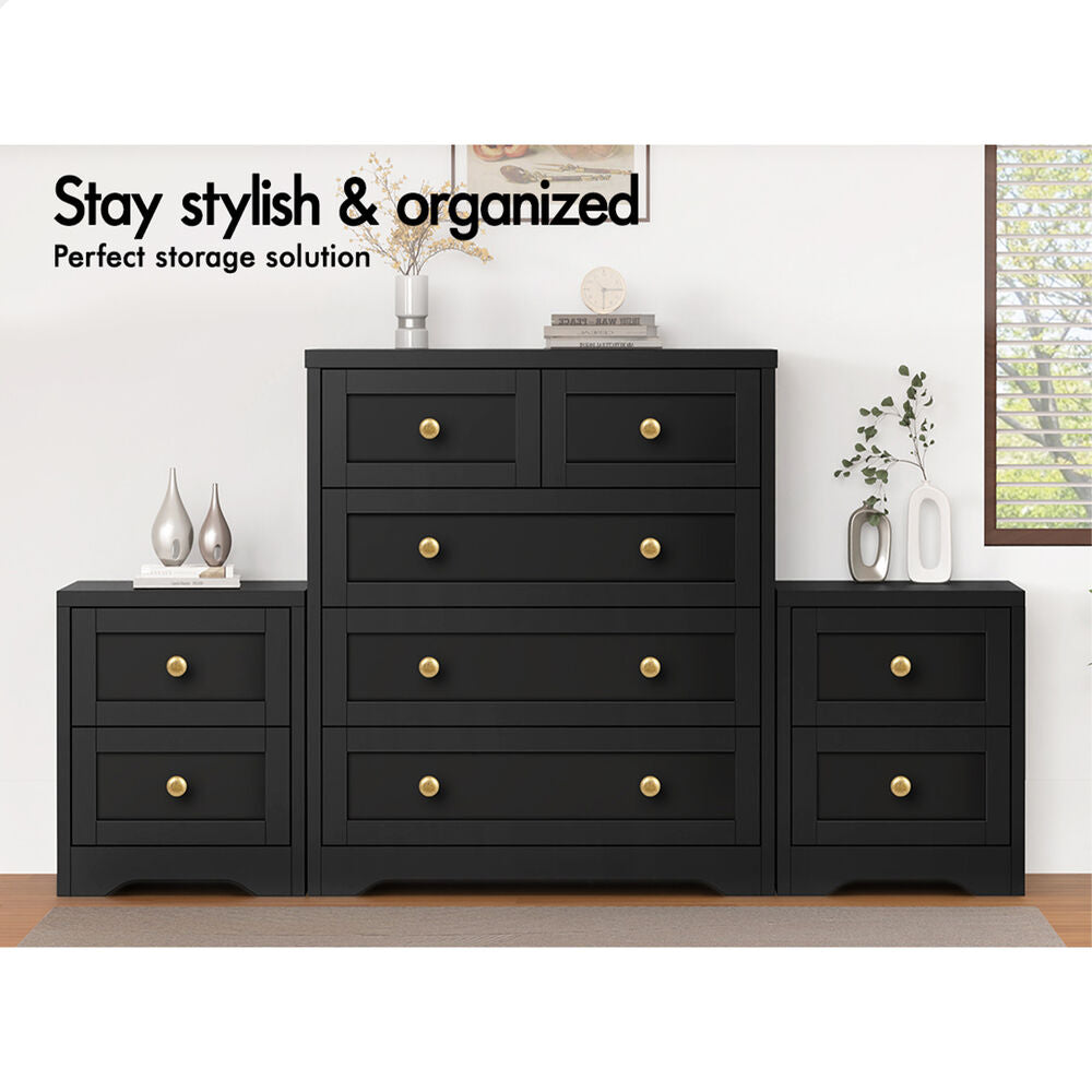 ALFORDSON 5 Chest of Drawers 2x Bedside Table Hamptons Bedroom Storage Black